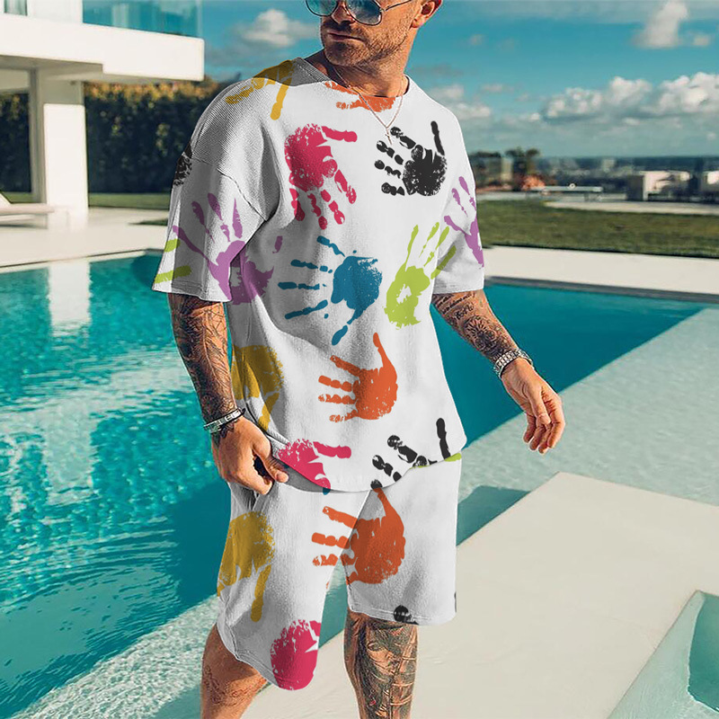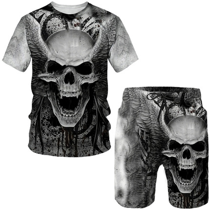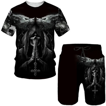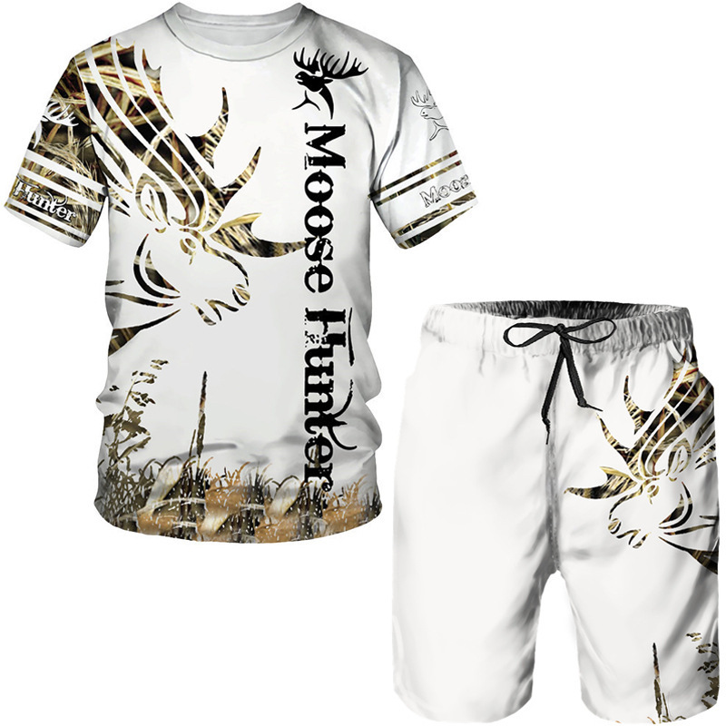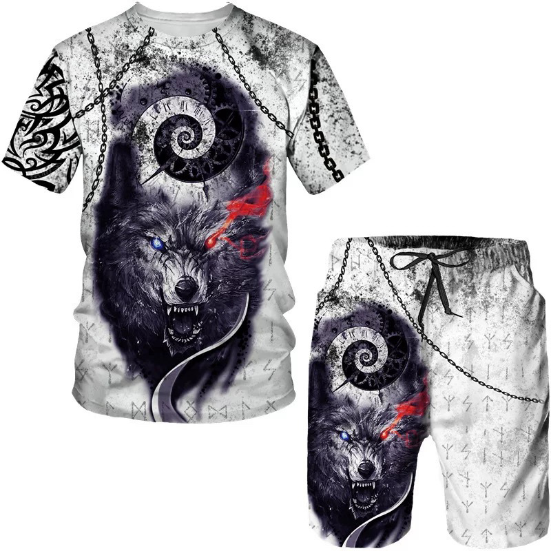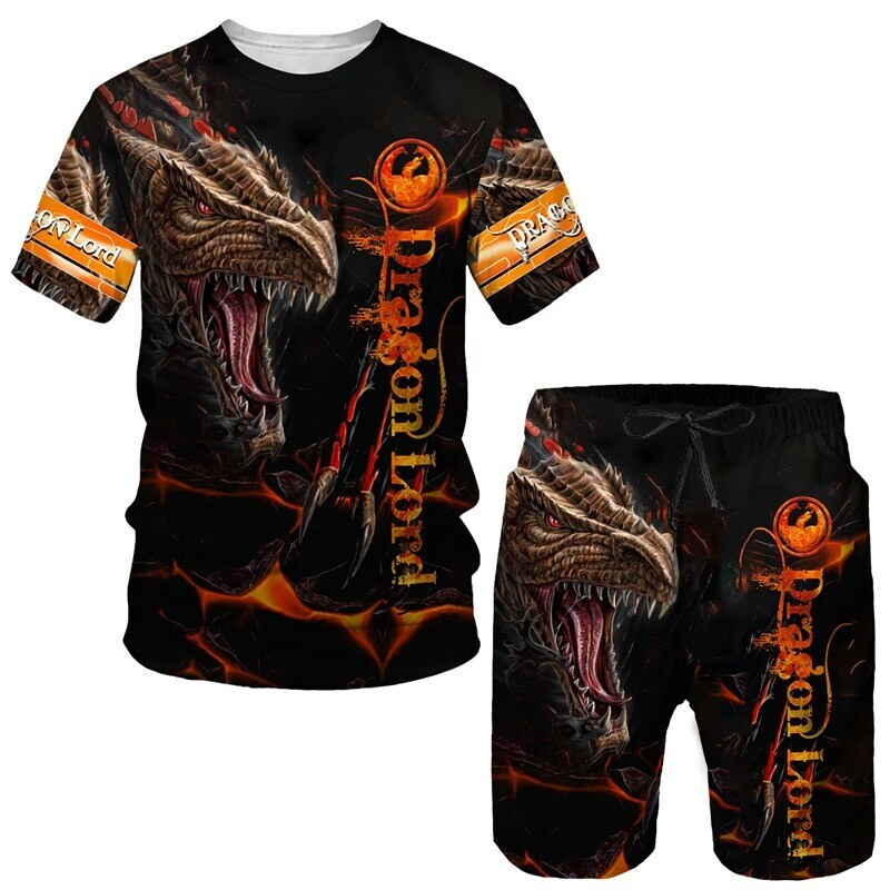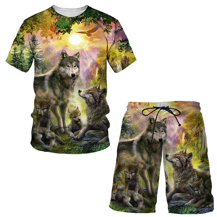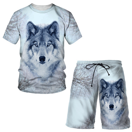 Мода 3D Лев с принтом Мужская спортивная одежда 2 комплекта Летний костюм Трансграничный AliExpress Новая футболка Шорты