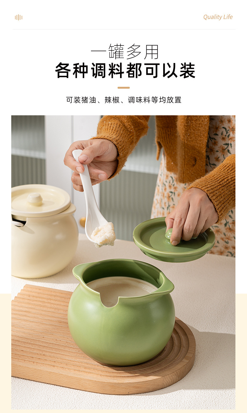 Банка Lard кремового цвета с крышкой и двойными ушками с ложкой бытовая устойчивая к высоким температурам керамическая банка для хранения керамических приправ