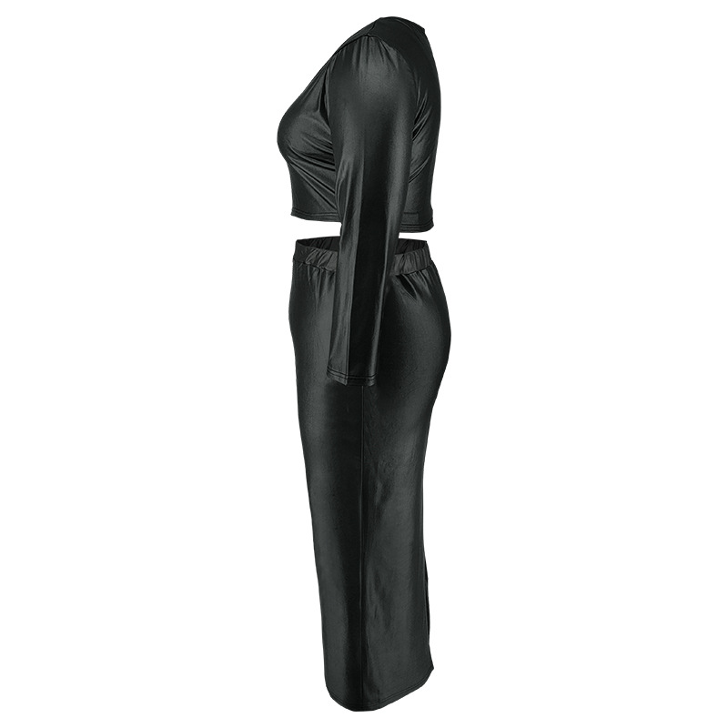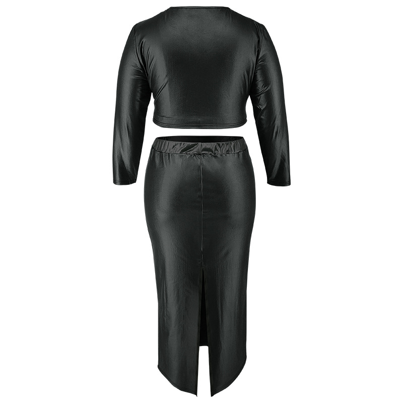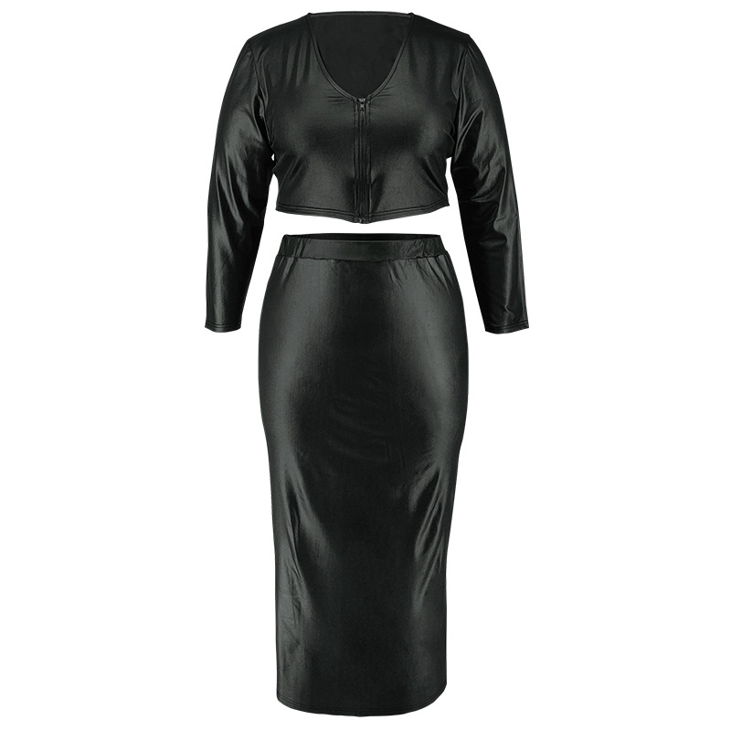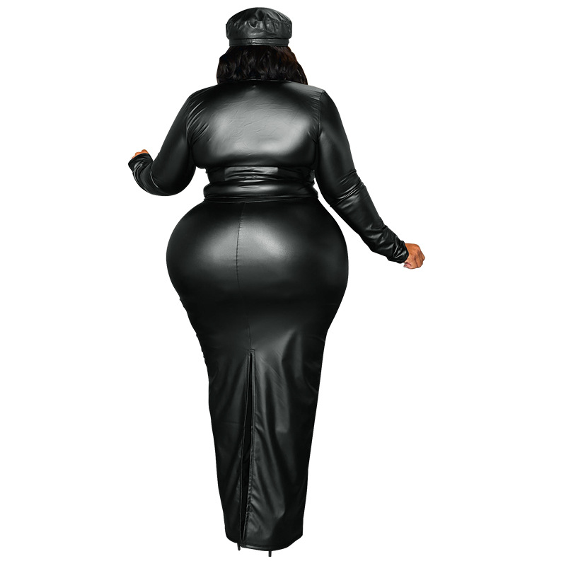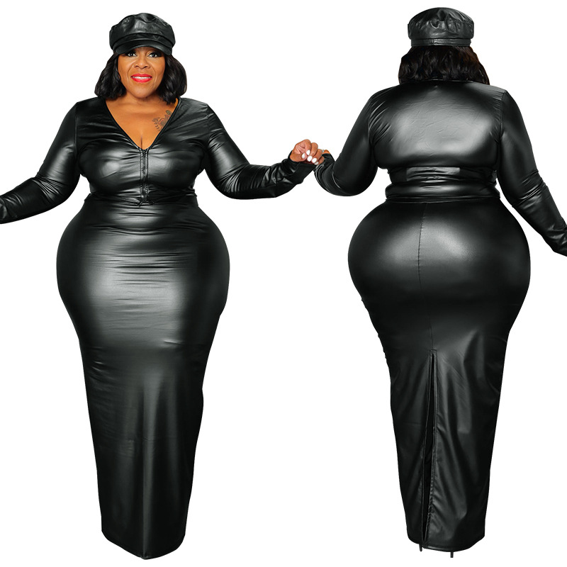 J8801 Трансграничная европейская и американская женская кожаная одежда больших размеров, платье с V-образным воротником, длинная юбка с длинными рукавами, костюм, источник, прямая продажа с фабрики