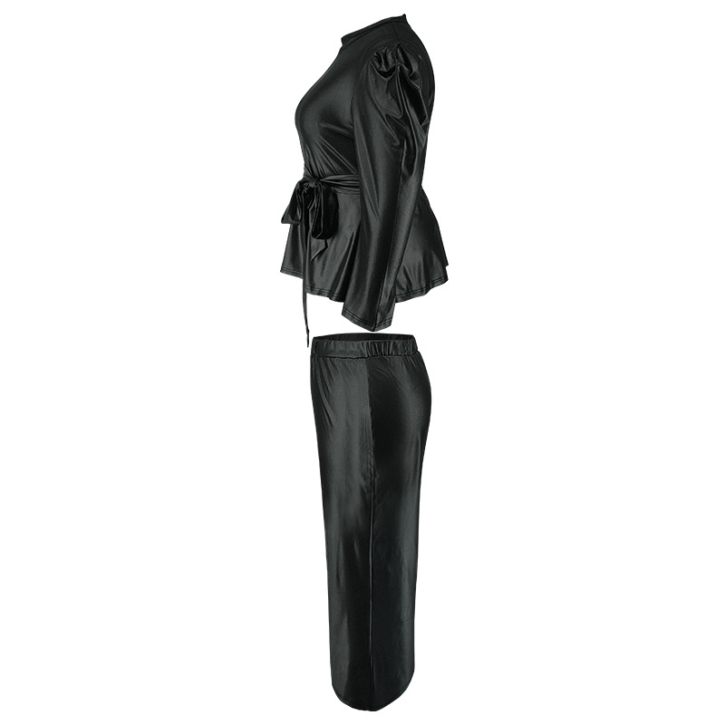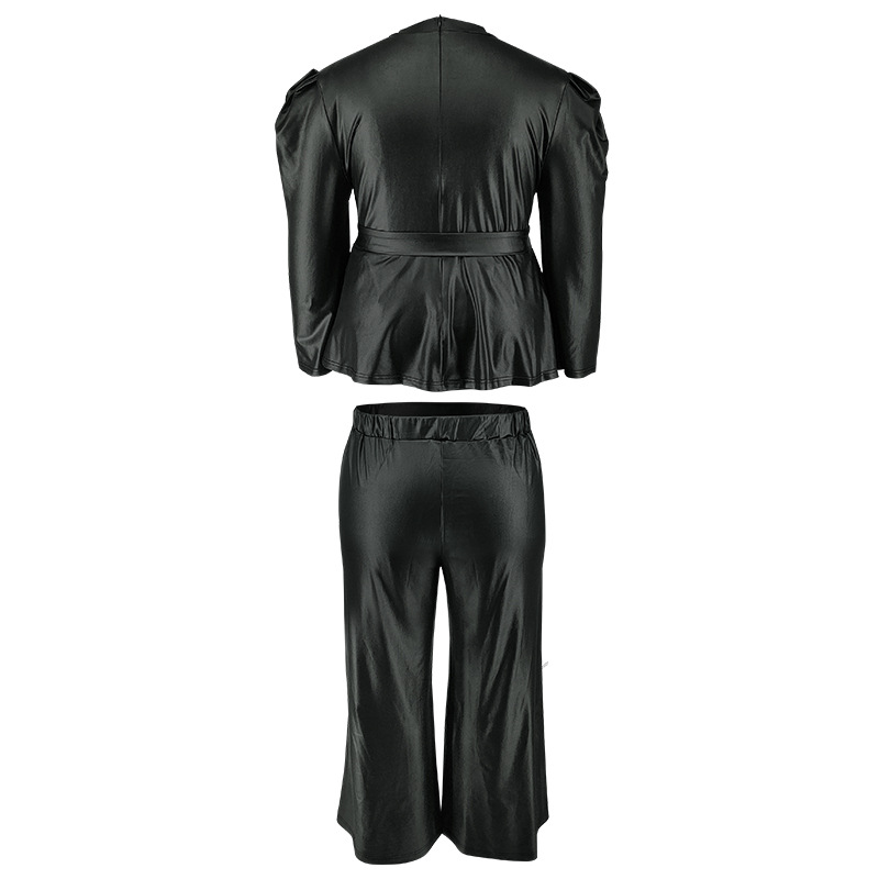 J8806 Трансграничная женская одежда больших размеров из искусственной кожи с воротником-стойкой, длинный костюм, источник, прямая продажа с фабрики