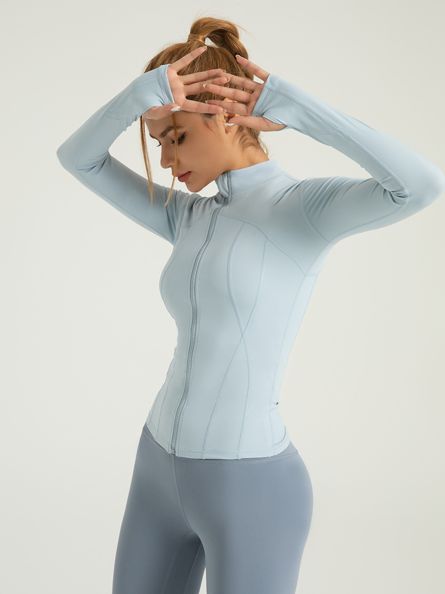Cross-Border Area телесная одежда для йоги спортивная куртка тонкая нейлоновая облегающая куртка с воротником-стойкой Топ Одежда для бега и тренировок