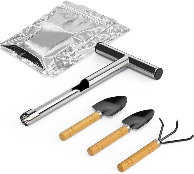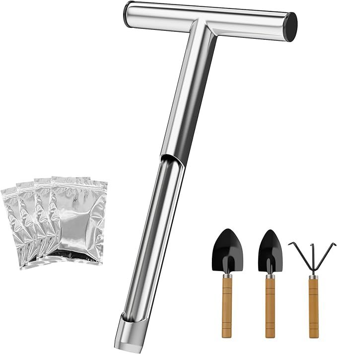 Soil Sample Probe, 12 Inch Stainless Steel T-Handle Soil Probe Stick for Turf Farm Golf Course, Soil Sampling, Comes with Set of Garden Tools and 4 Reusable Sample Bags
