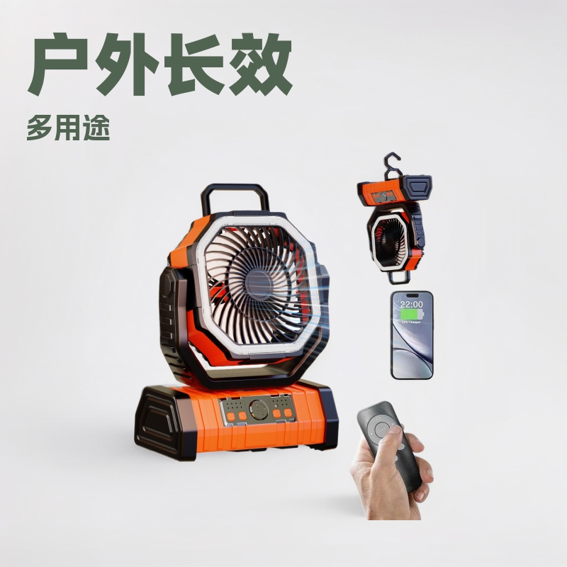 Портативный многофункциональный вентилятор для кемпинга с дистанционным управлением, с функцией вращения головы, для рыбалки, с подсветкой, для использования на открытом воздухе, с длительным сроком службы.