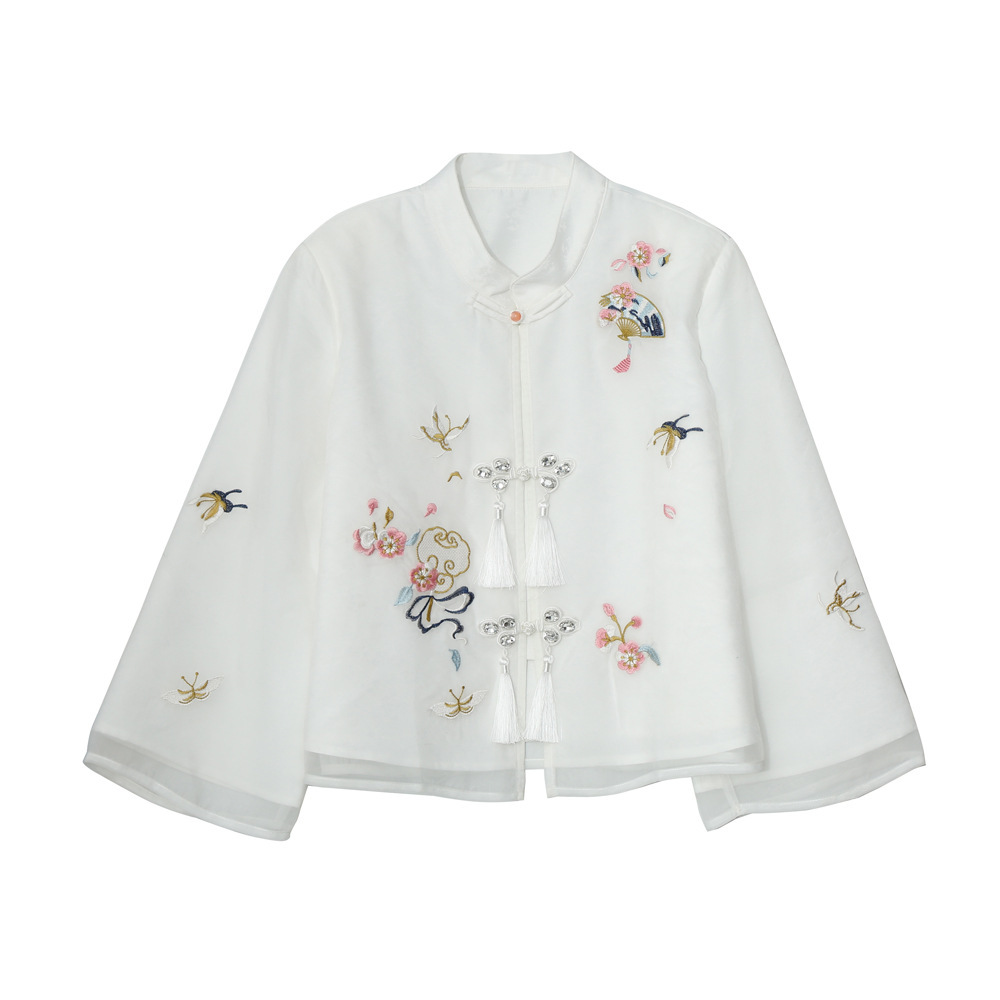 2394 Xuanchen Новая толстая атмосфера MM чувство вышивки Национальный стиль улучшенная версия пит-пуговица маленькая рубашка с блестками юбка