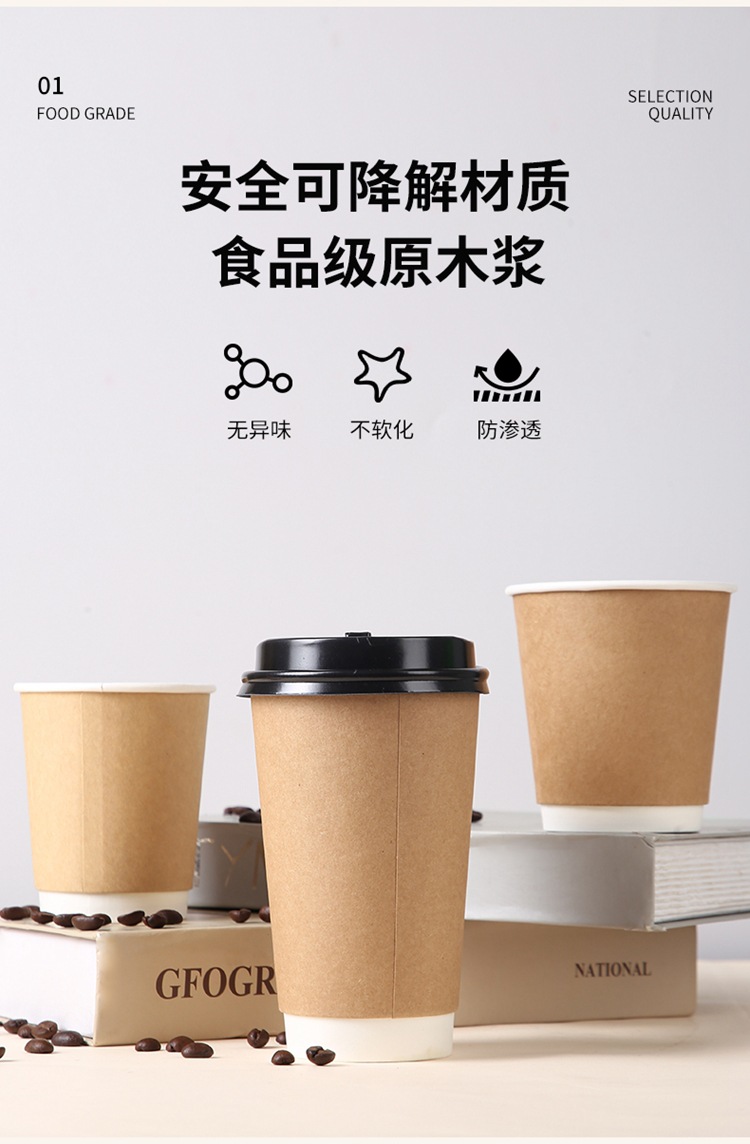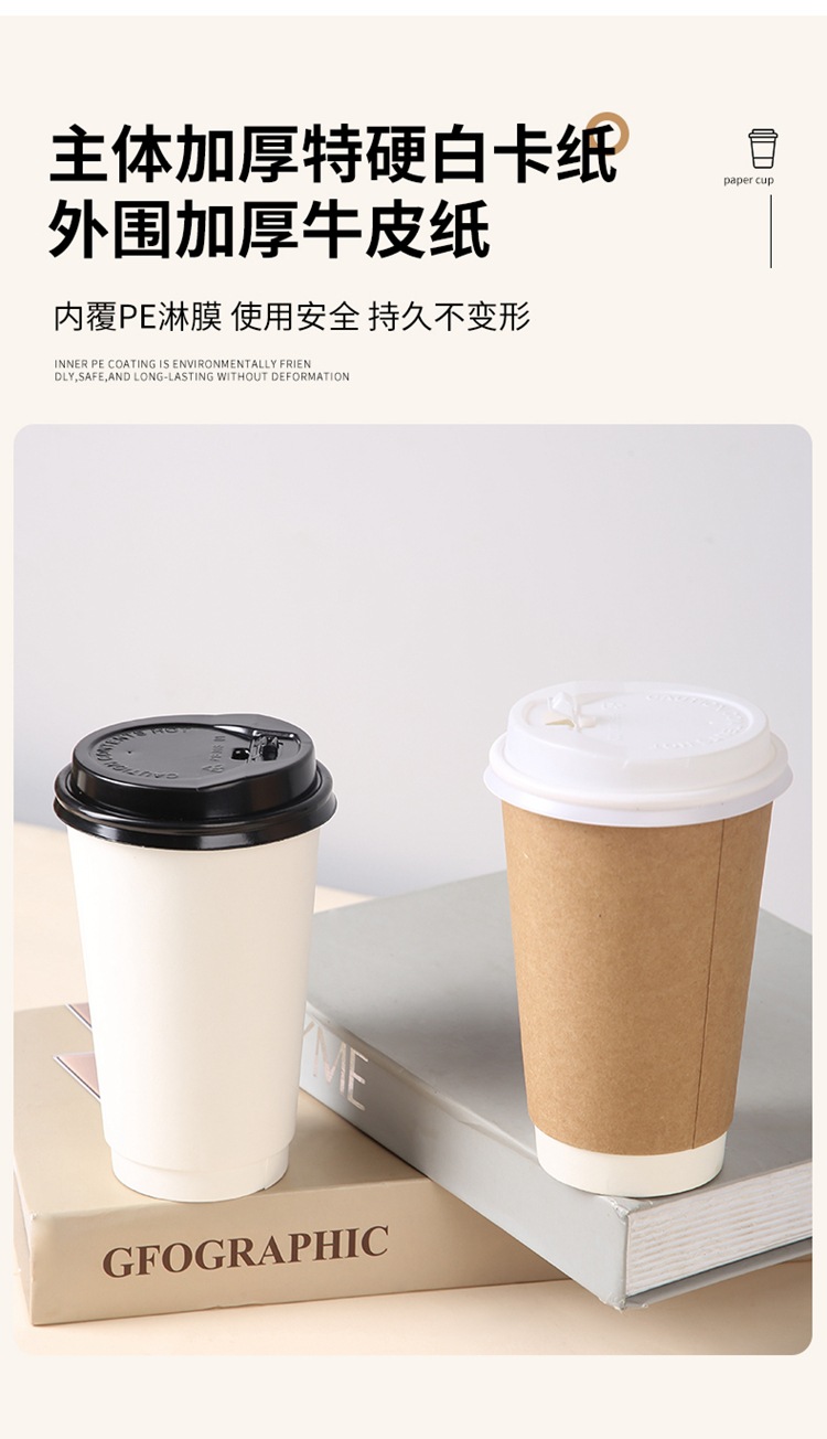 Одноразовые крафт-бумага кофейная чашка мякоть с бумажной крышкой крафт-бумага крышка пластиковая крышка теплоизоляционная анти-горячий ремень для упаковки чашки