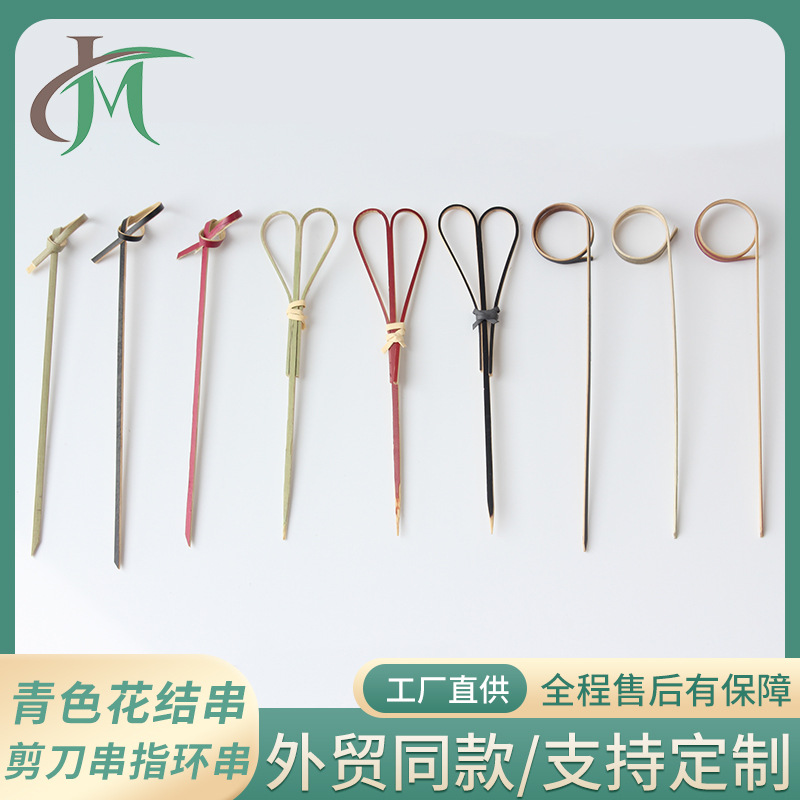 Шпажки для фруктов из натурального бамбука, 100 шт./упак., синие, с зелеными ножницами, для консервированных фруктов, Amazon