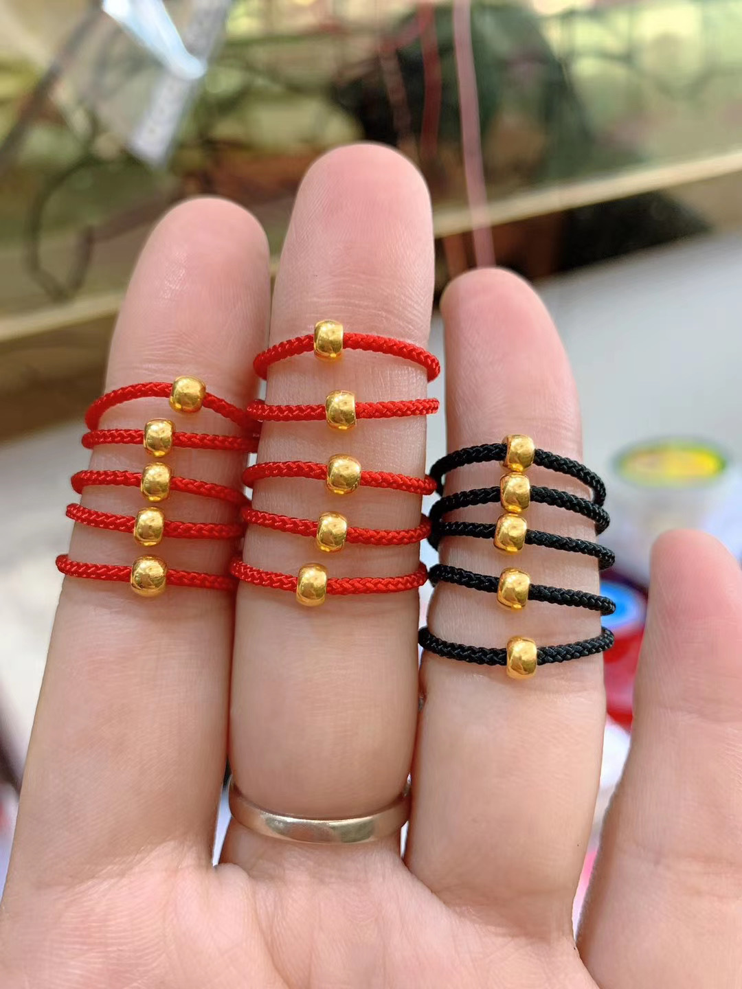Кольцо с золотой бусиной K (черное); Кольцо с золотой бусиной K (красное); Золотые бусины K идеальны (черные); Золотые бусины K идеальны (красные)