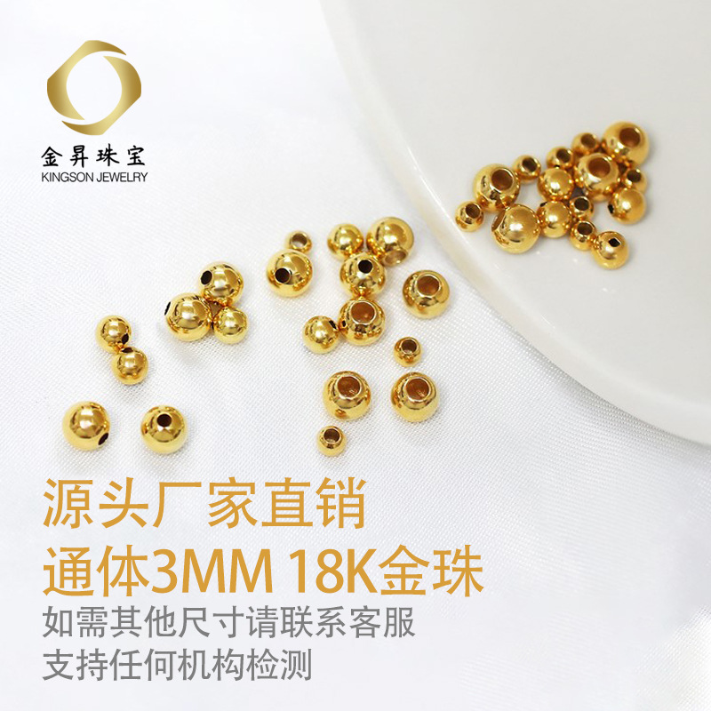 Золотые бусины 18к AU750, маленькие, 3 мм, для самостоятельного изготовления плетеных колец, браслетов, ювелирных украшений, оптом.