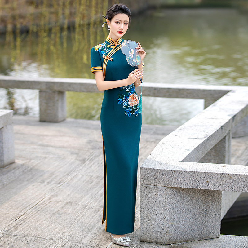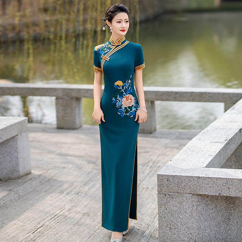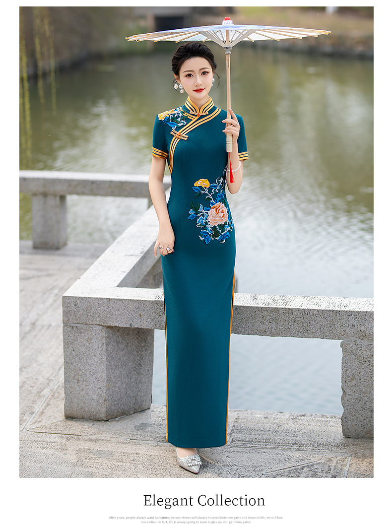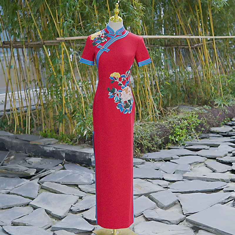 Костюм-ципао для подиума 2025: новая модная сценическая одежда для зрелых женщин, молодежный стиль, весенние цветы