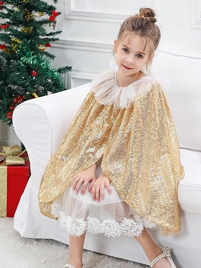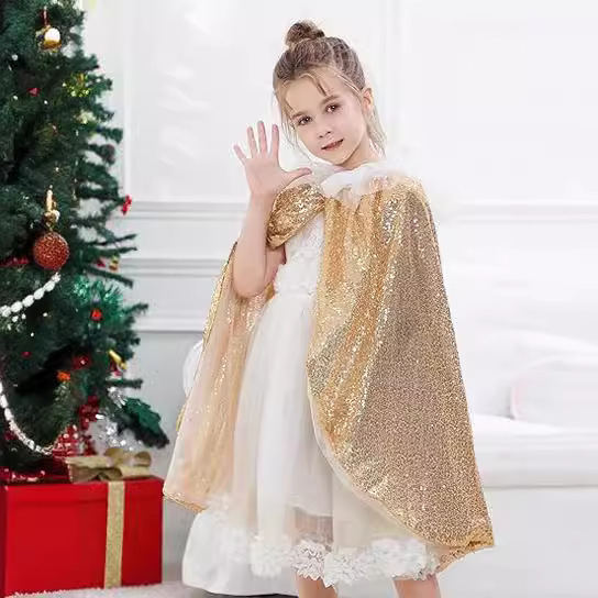 Рождественский короткий плащ с двухслойным сетчатым вырезом
