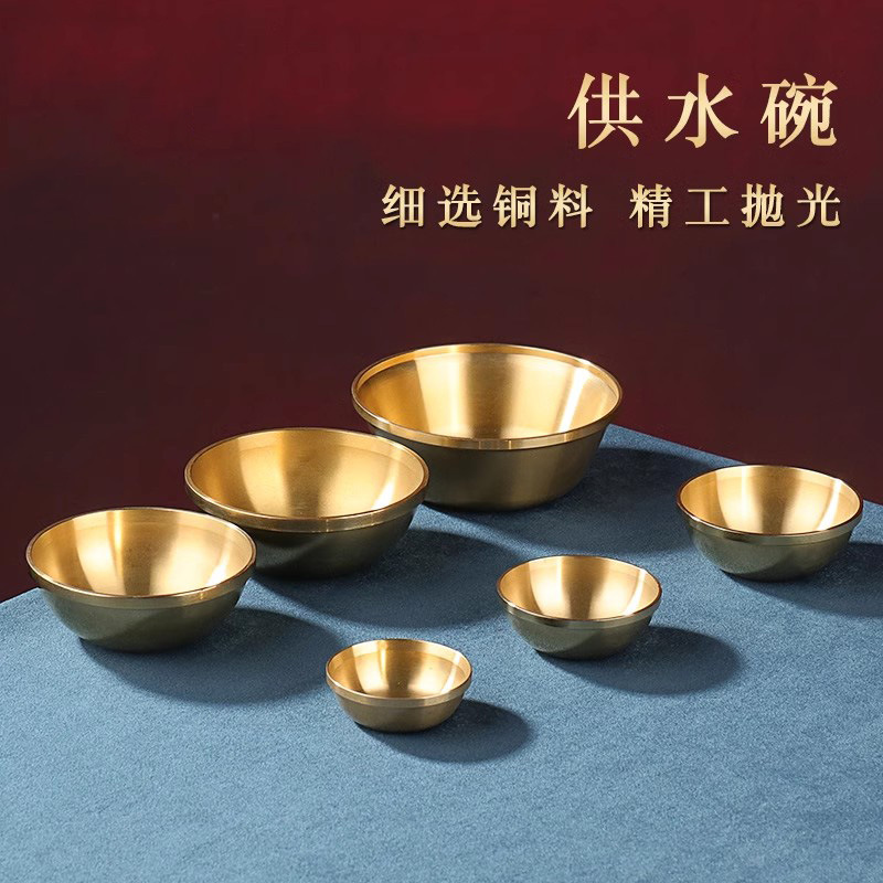 Тибетская гладкая латунная чаша для воды для офиса и дома, маленькая медная чаша для декора интерьера, чашка для воды доступна в различных размерах.
