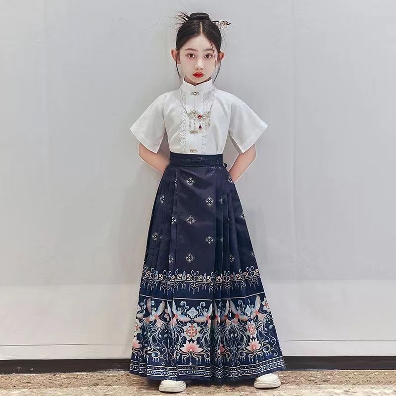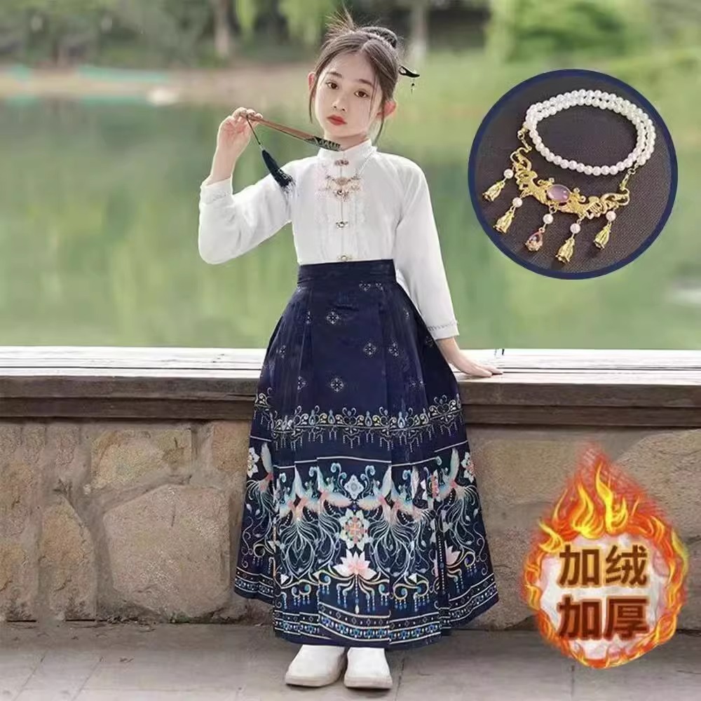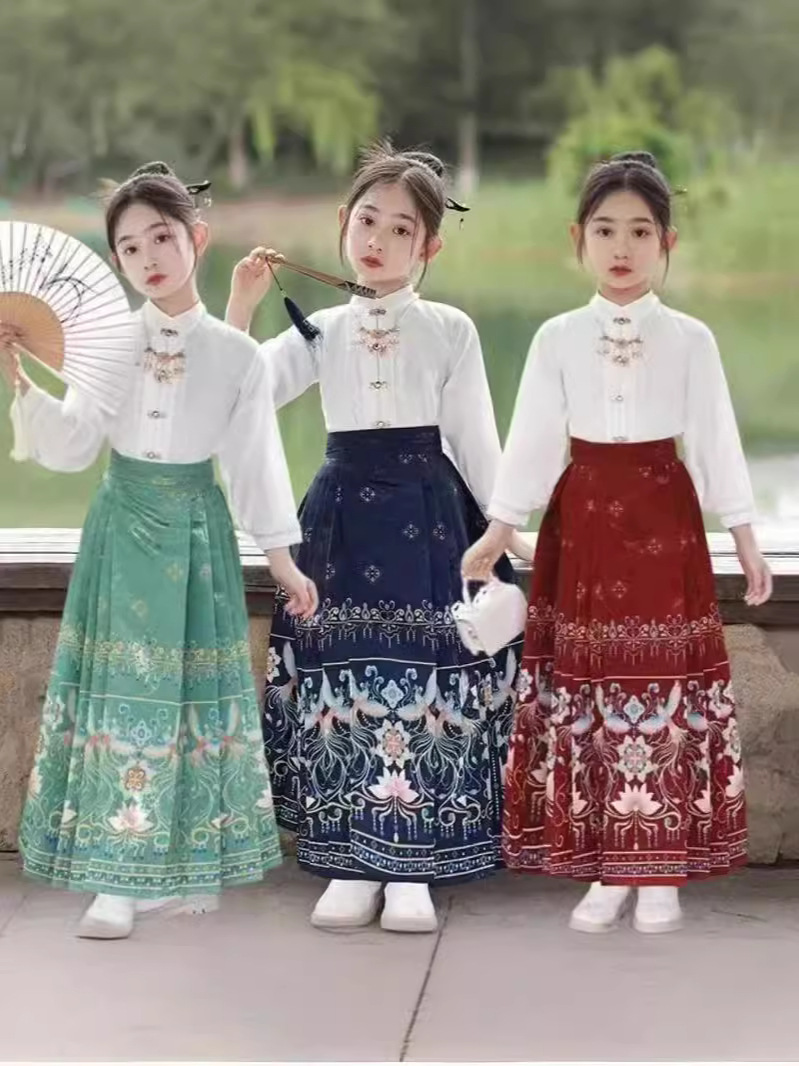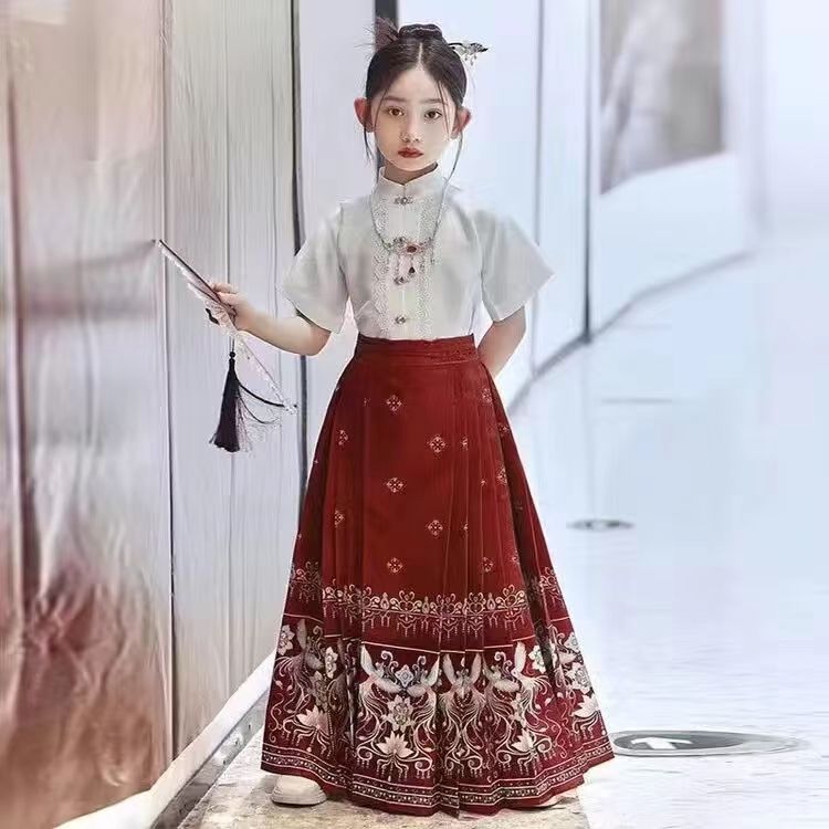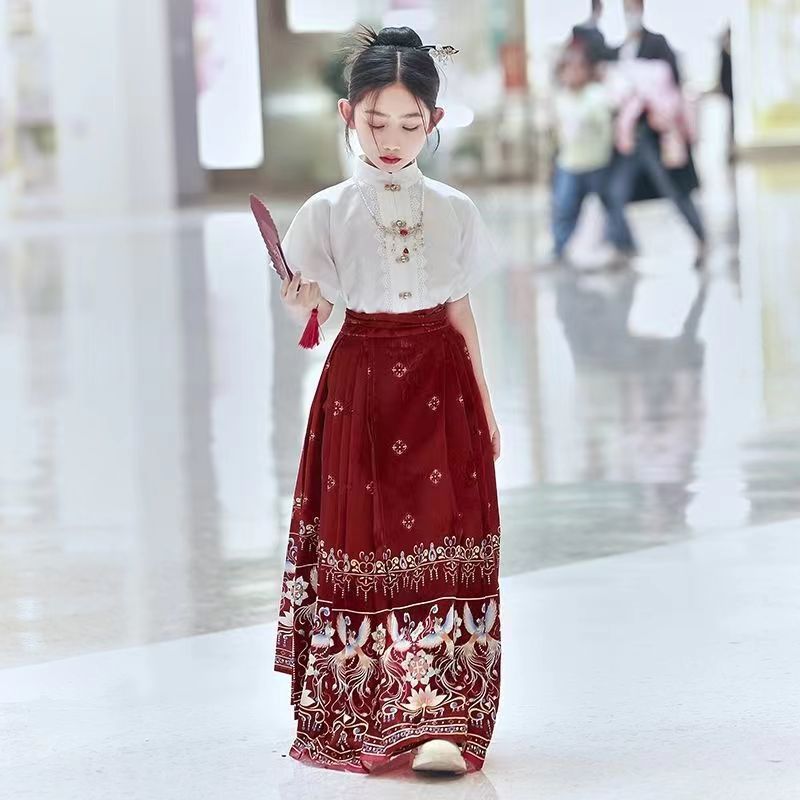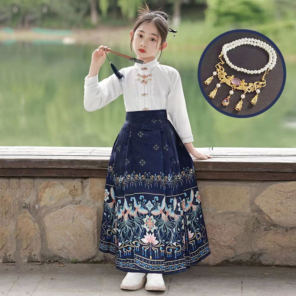 Девушки Hanfu Китайский стиль Ming Horse юбка Kids Tang Ретро фея юбка весна и осень новый костюм для девочек