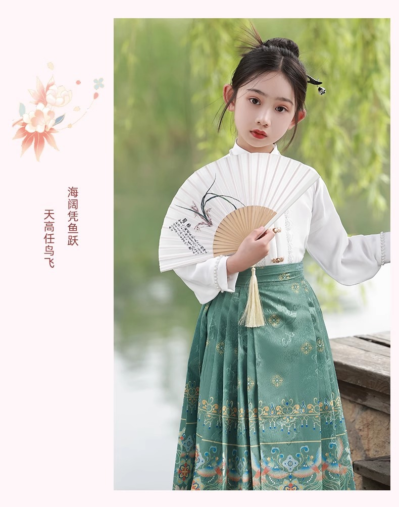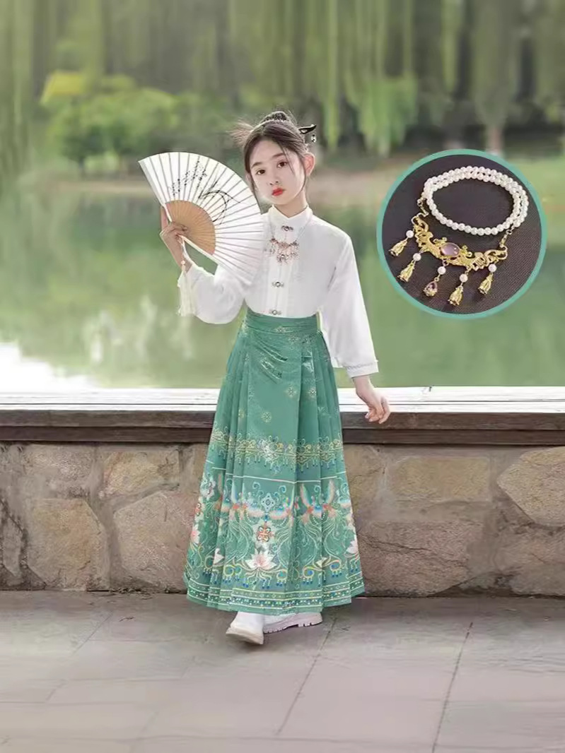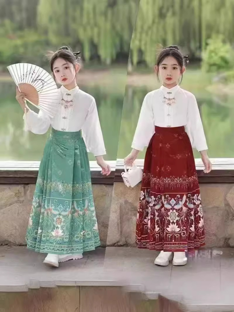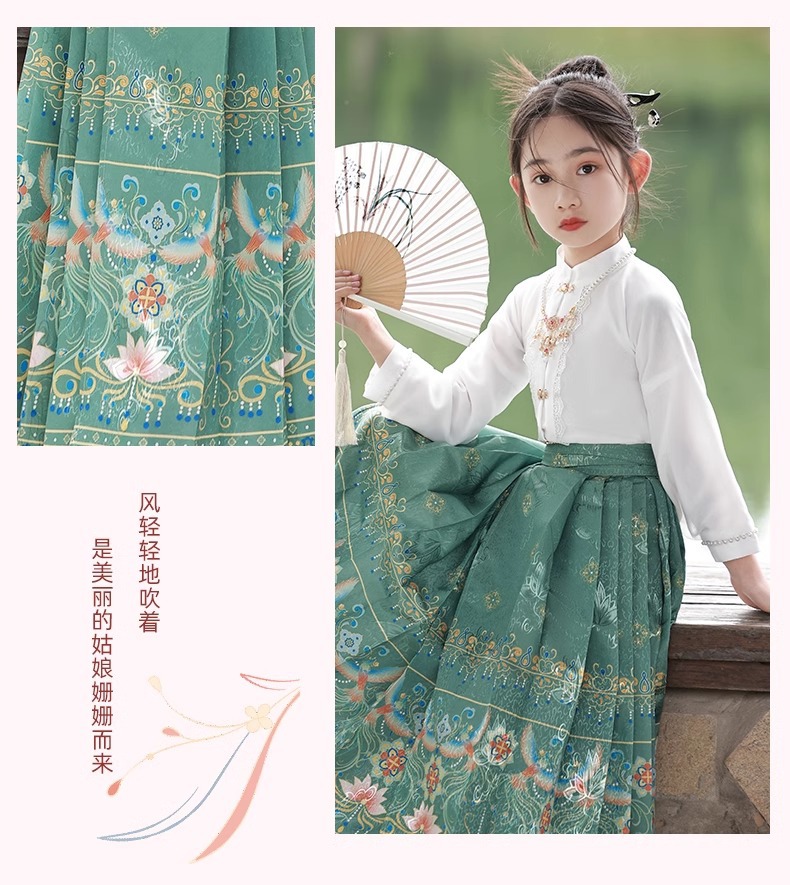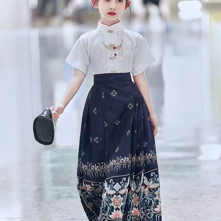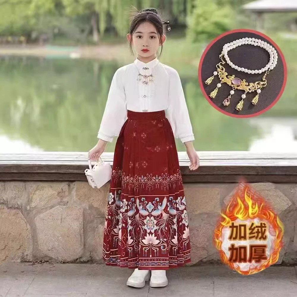 Девушки Hanfu Китайский стиль Ming Horse юбка Kids Tang Ретро фея юбка весна и осень новый костюм для девочек