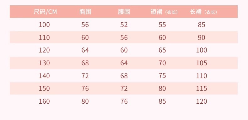 100cm; 110cm; 120cm; 130cm; 140cm; 150cm; 160cm
