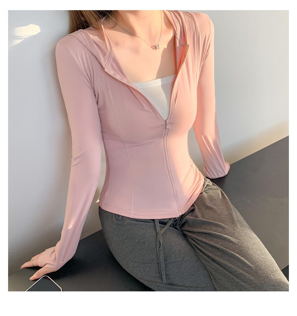 Солнцезащитная одежда для женщин на лето, легкая и облегающая солнцезащитная одежда из ледяного шелка, кардиган с капюшоном, защищающий от ультрафиолета, солнцезащитная куртка для йоги для женщин.
