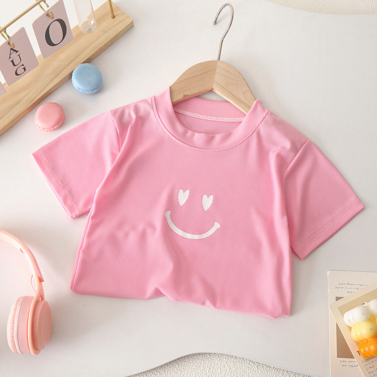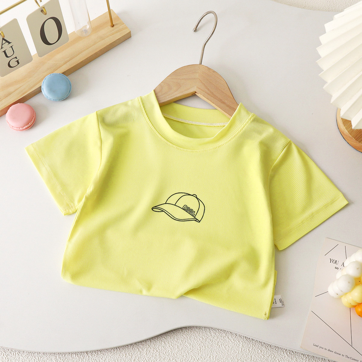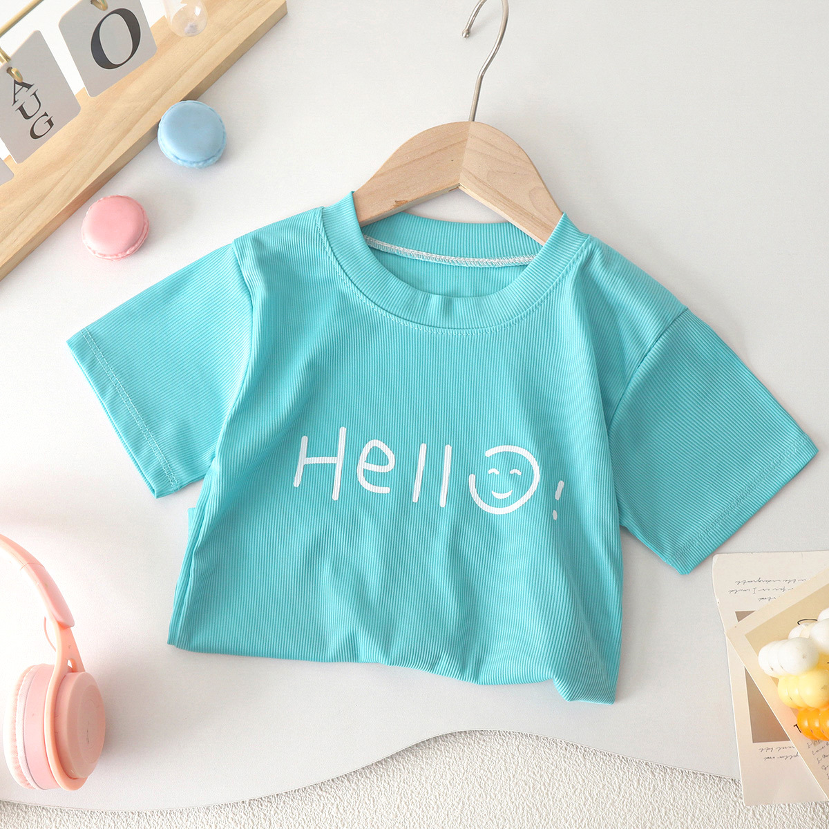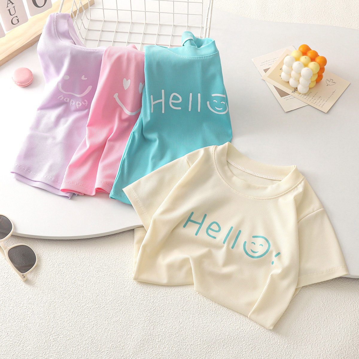 Прохладный летний цвет конфеты для детей летняя футболка с короткими рукавами с круглым вырезом