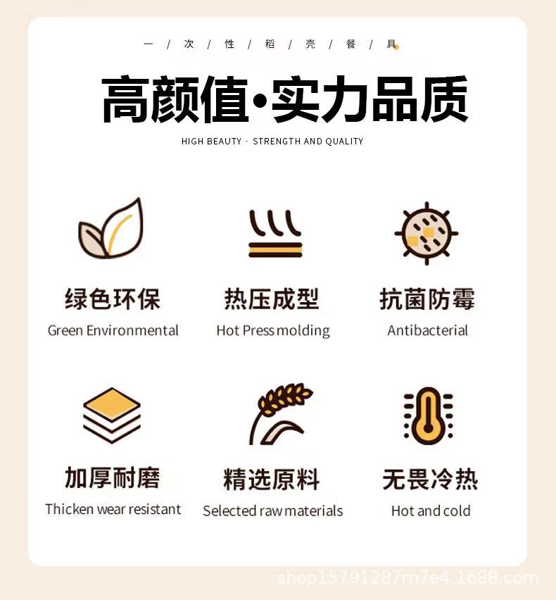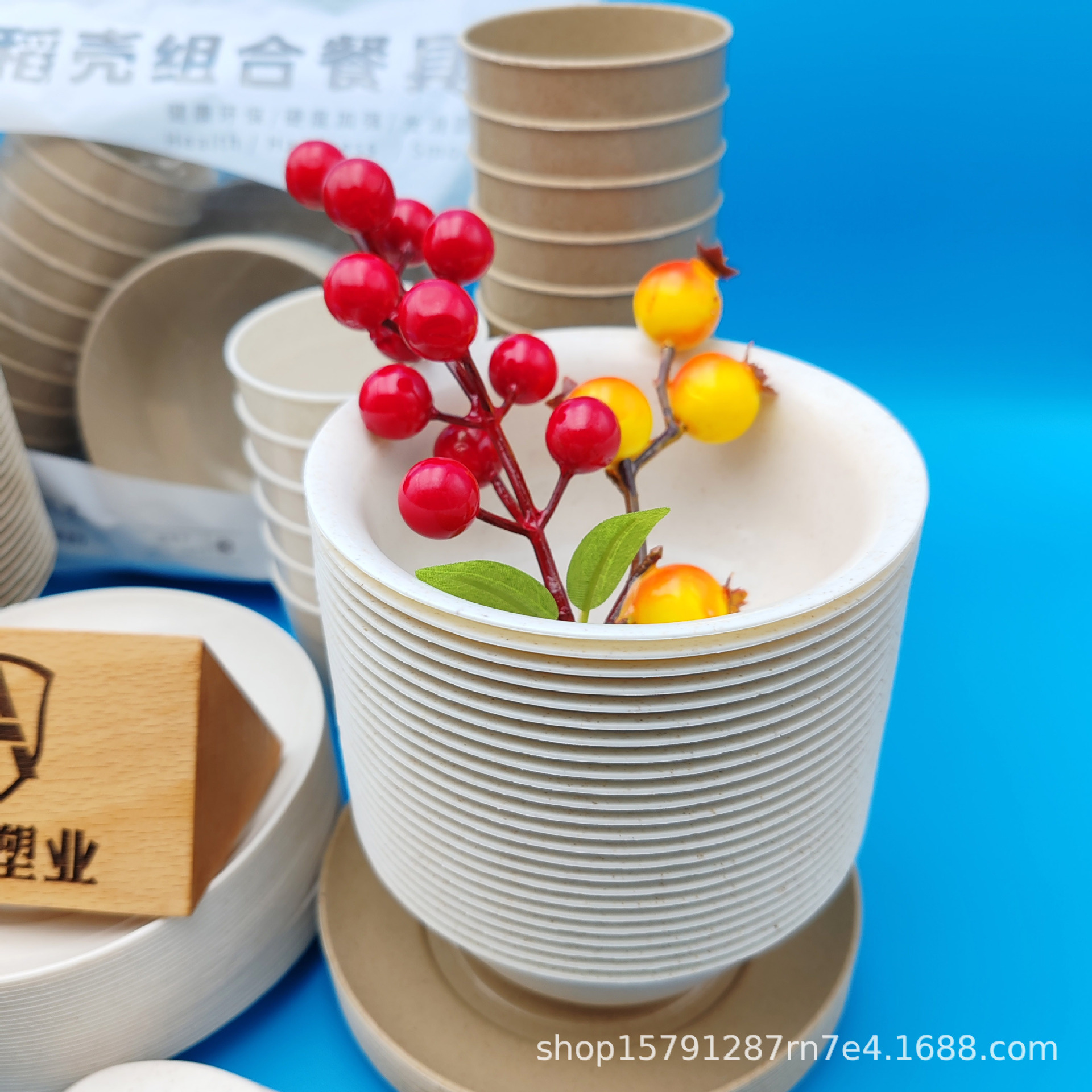Одноразовые тарелки и палочки для еды из рисовой шелухи биоразлагаемы и имеют эстетичный вид, подходят для домашних банкетов и свадебного сервировки стола.