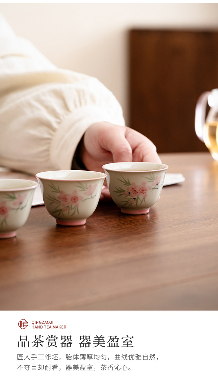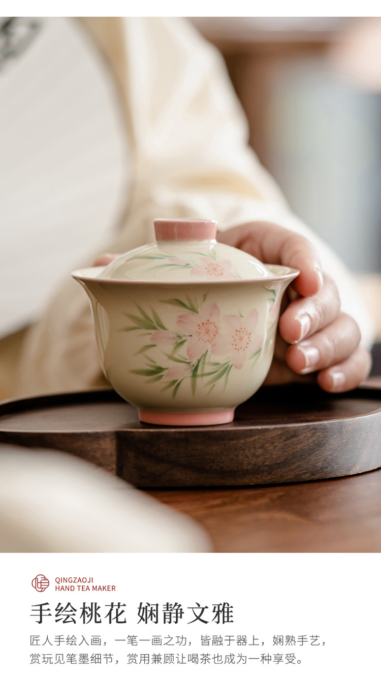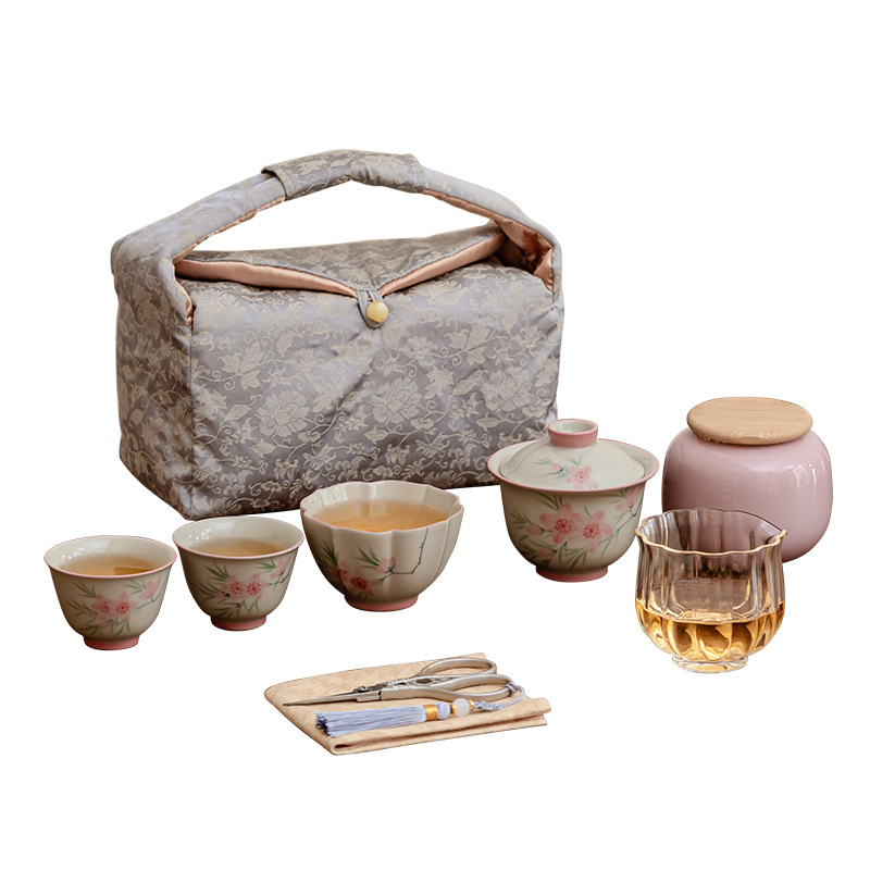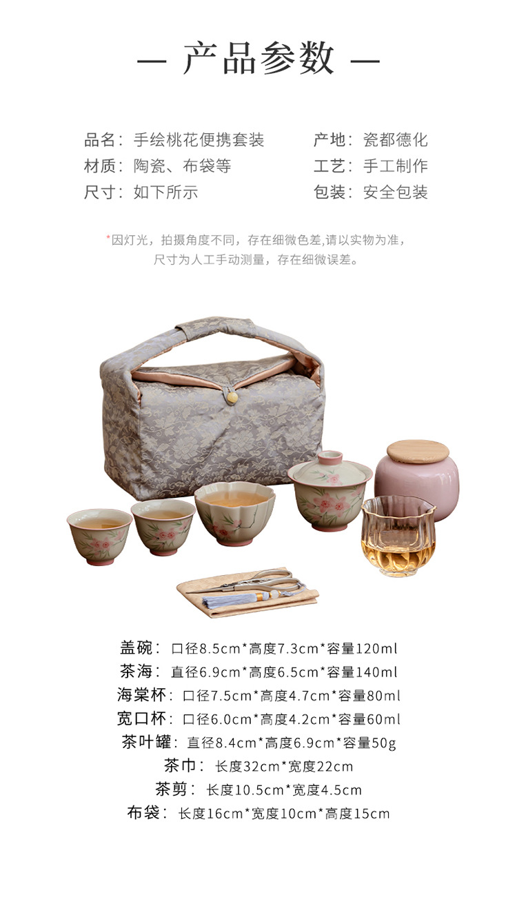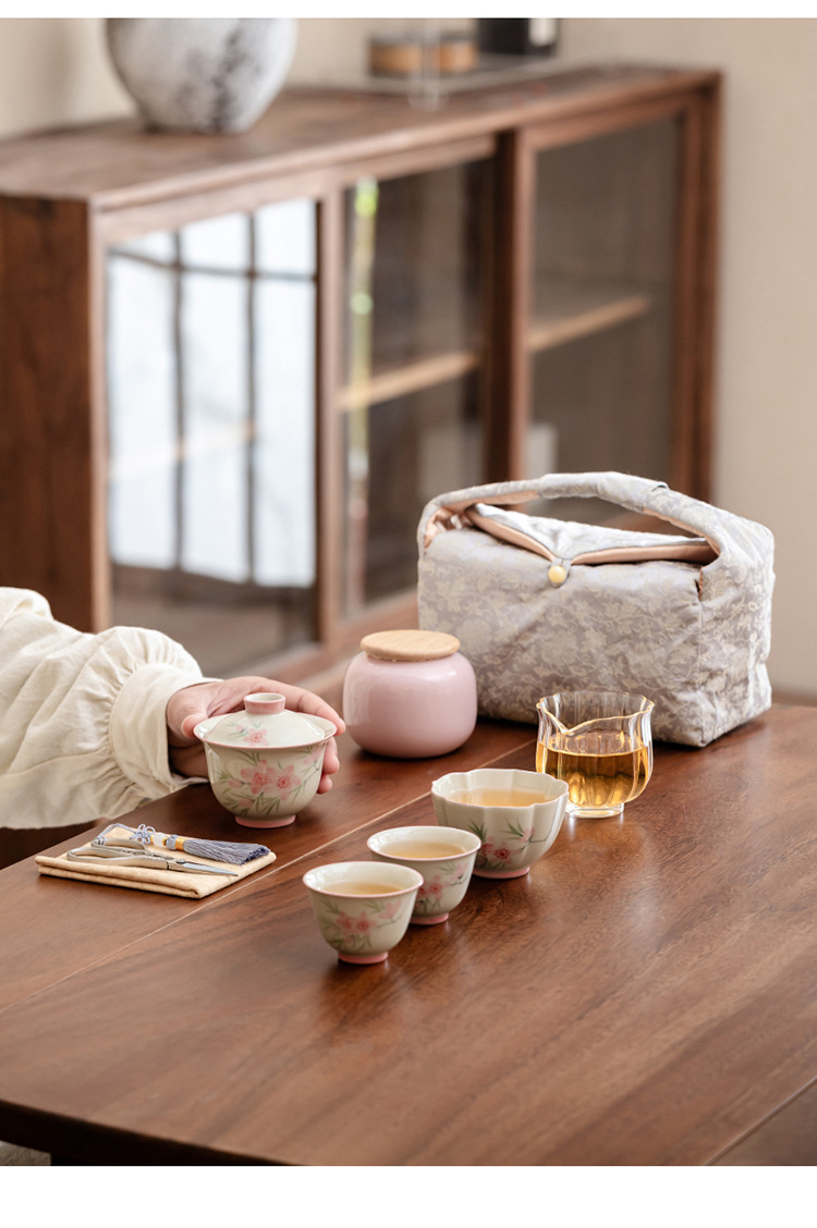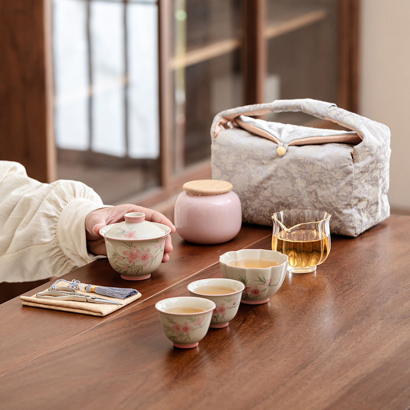 Ледяной стол рисованной дорожный чайный сервиз-7 литераторов персиковые цветы; Ледяной стол рисованной дорожный чайный сервиз-9 литераторов персиковые цветы