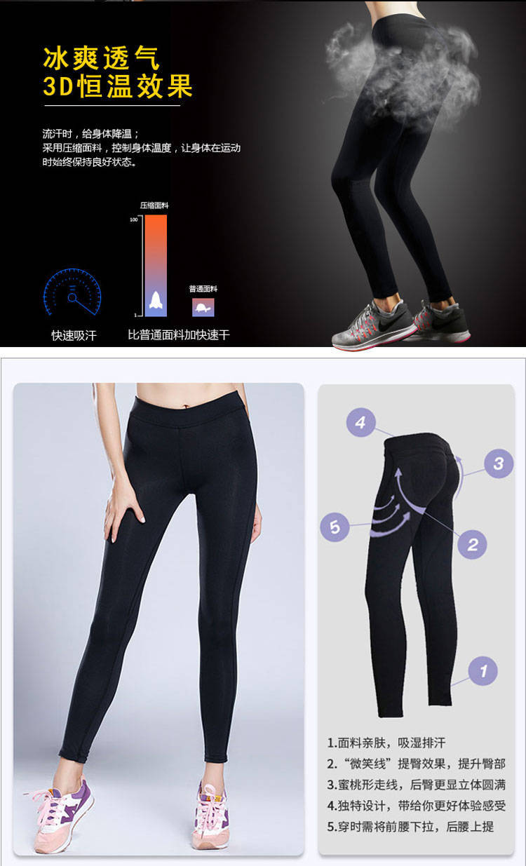 Обтягывающие брюки Спортивный бег Танец Тренировка Йога Штаны тонкие, сухие, дышащие, высокая эластичная фитнес-брюки