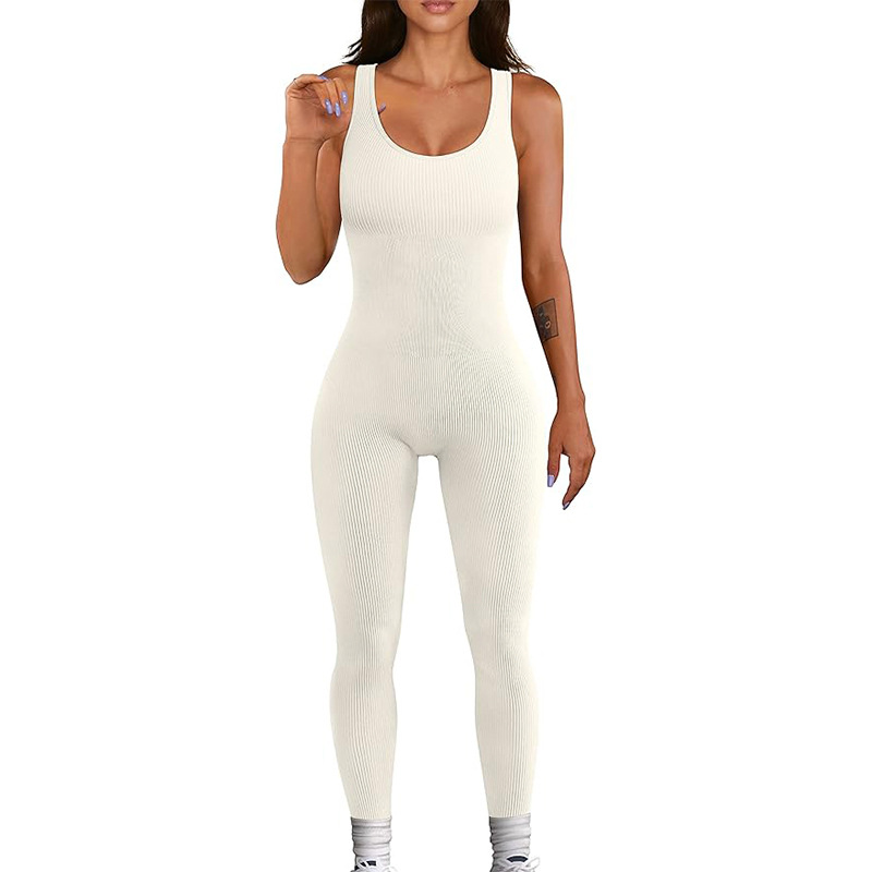 Сливочная спортивная одежда с открытой спиной и бедрами Тонкие фитнес-брюки Женская спортивная тренировка Воздушная одежда для йоги