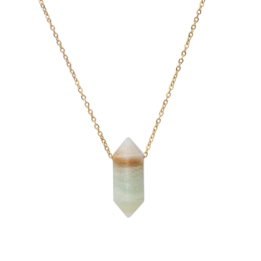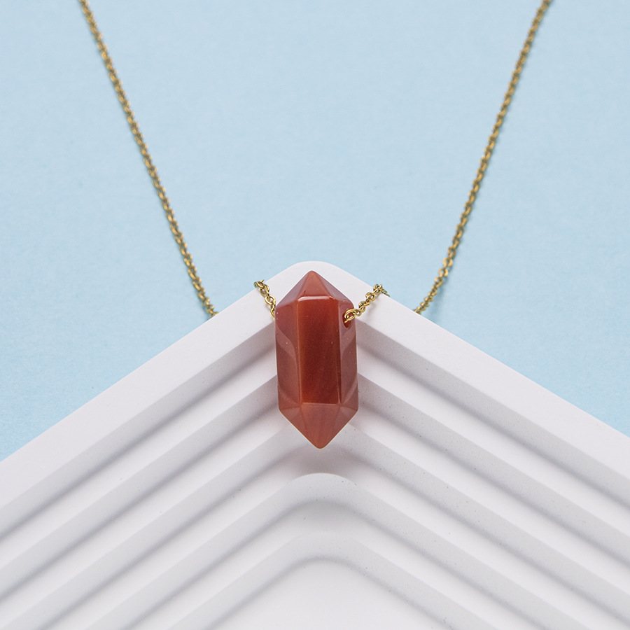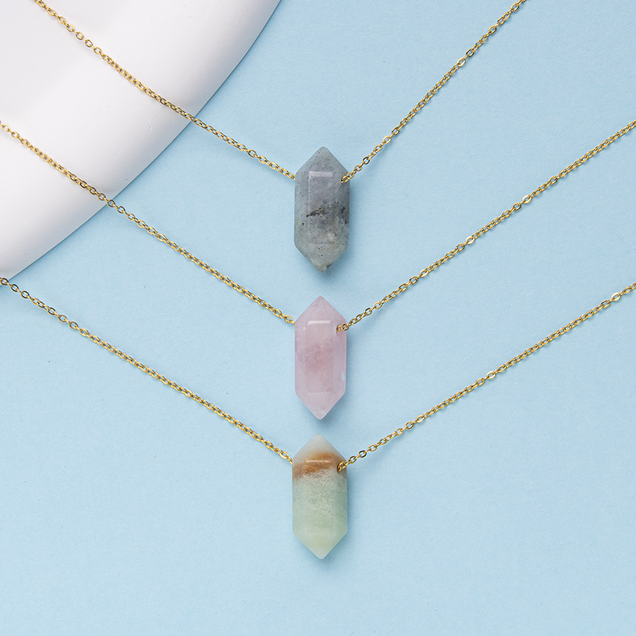 Новый стиль креативный кристалл двойной остроконечный шестигранный подвеска ювелирные изделия из натурального камня из нержавеющей стали, чтобы сохранить цвет дамы ожерелье