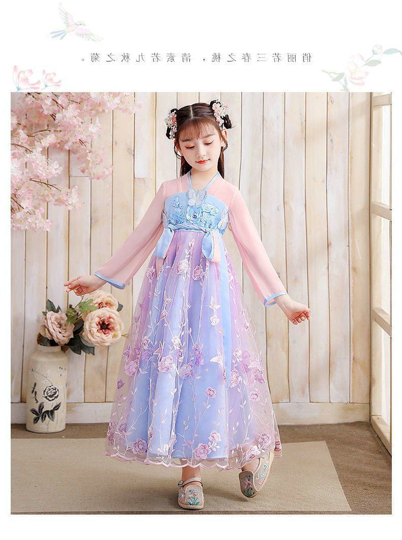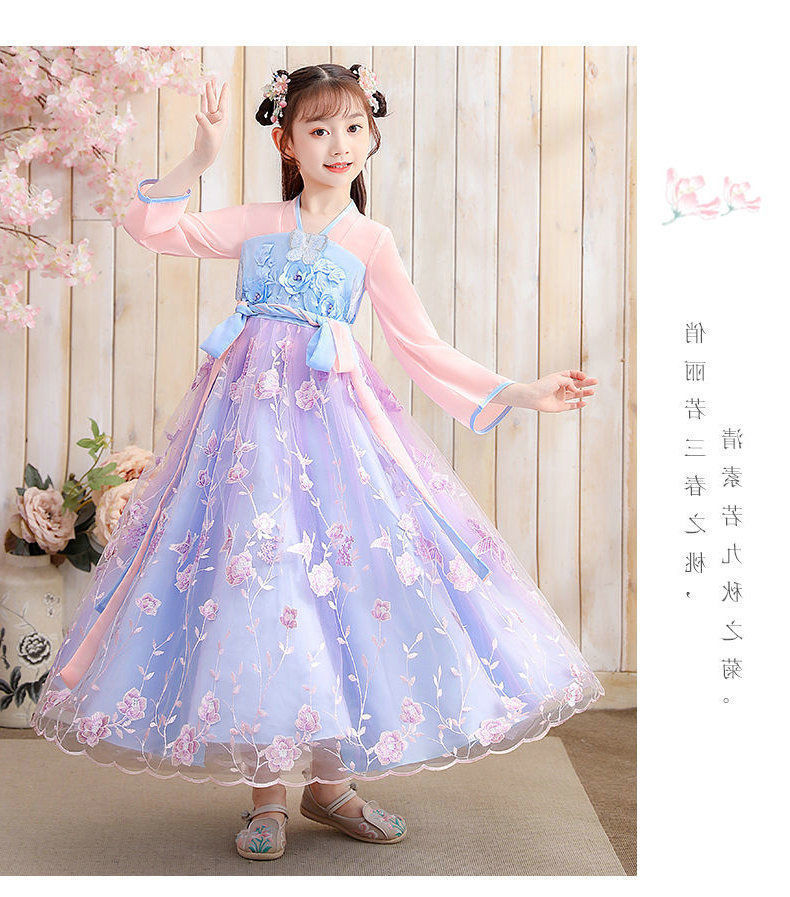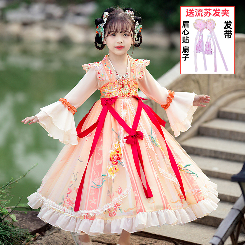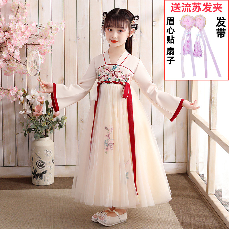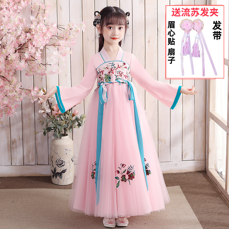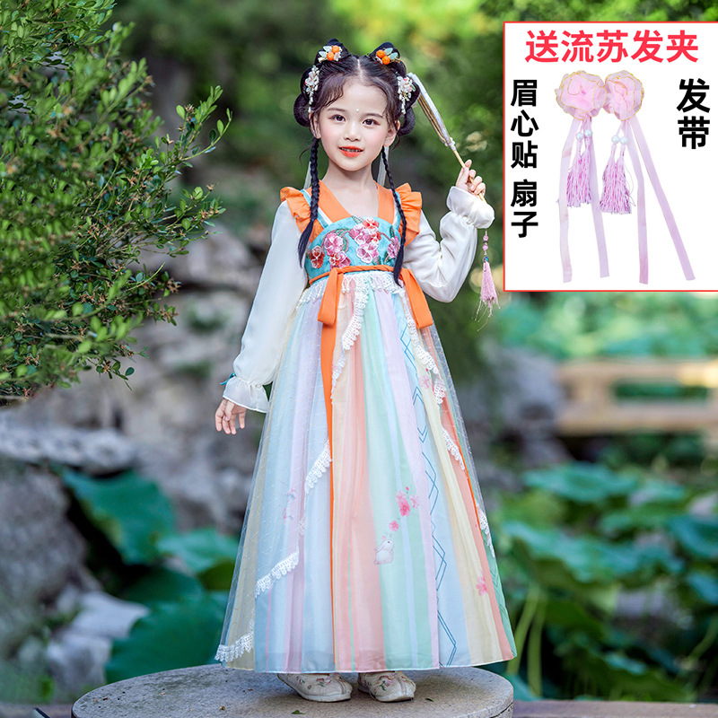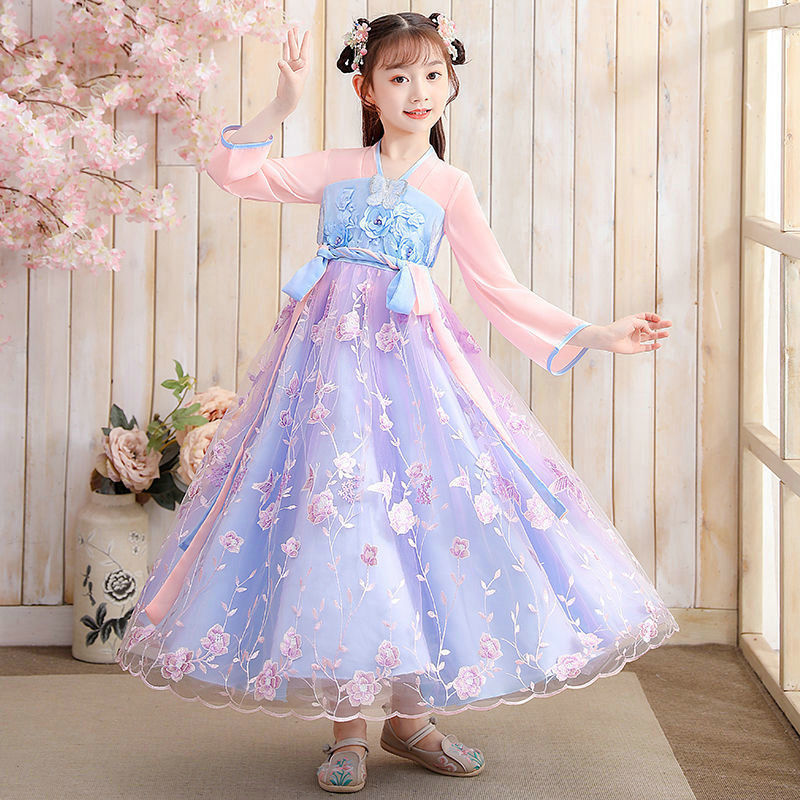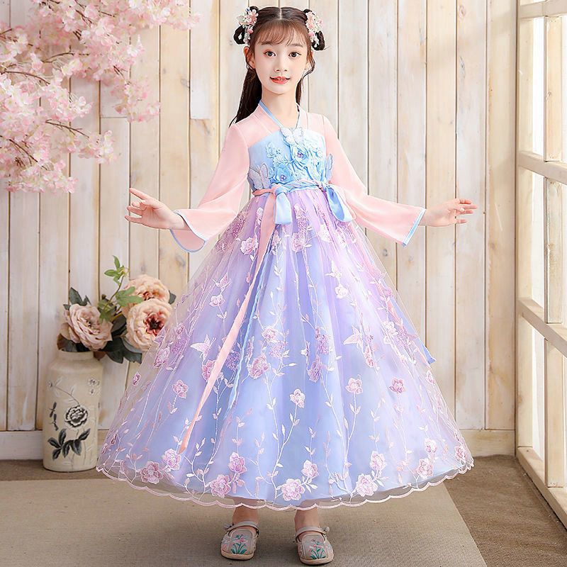 Осеннее платье для девочек 2024 новый стиль с длинными рукавами для детей Hanfu детская одежда платье принцессы девушки весна и осень юбка