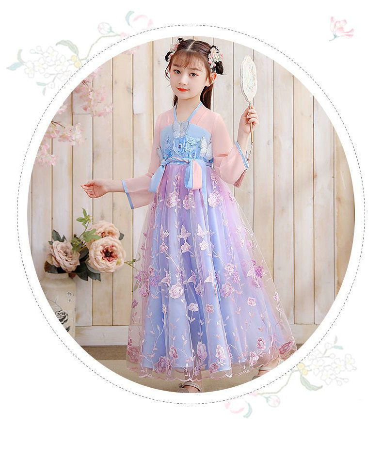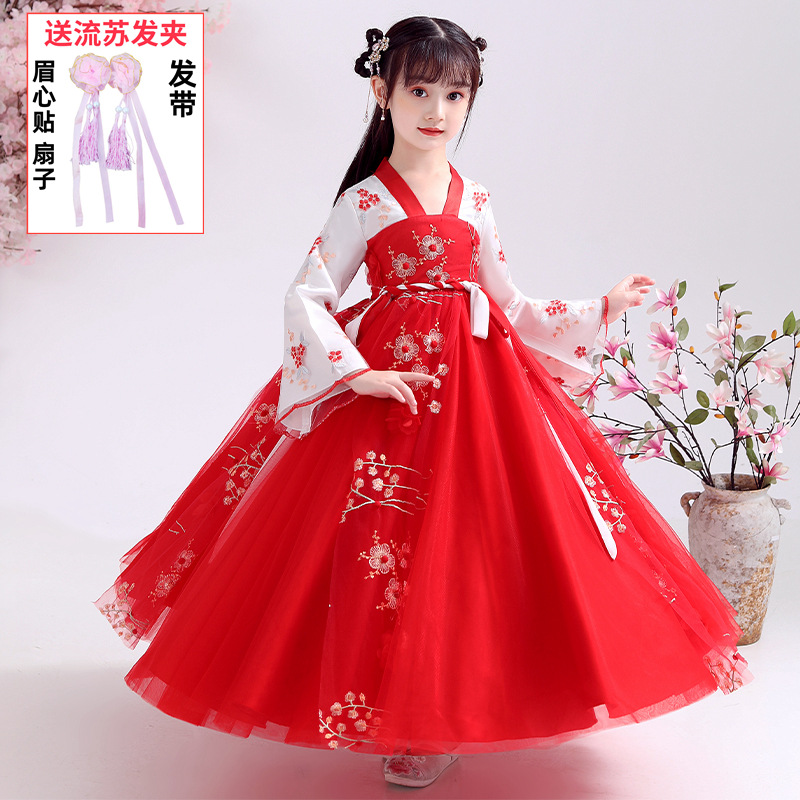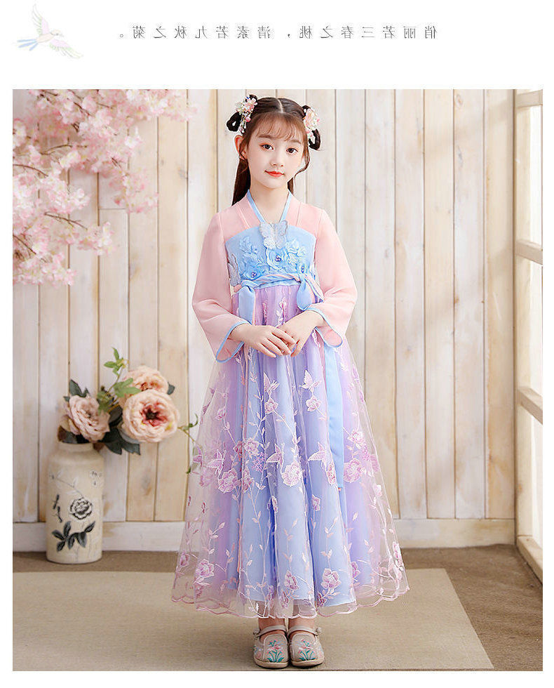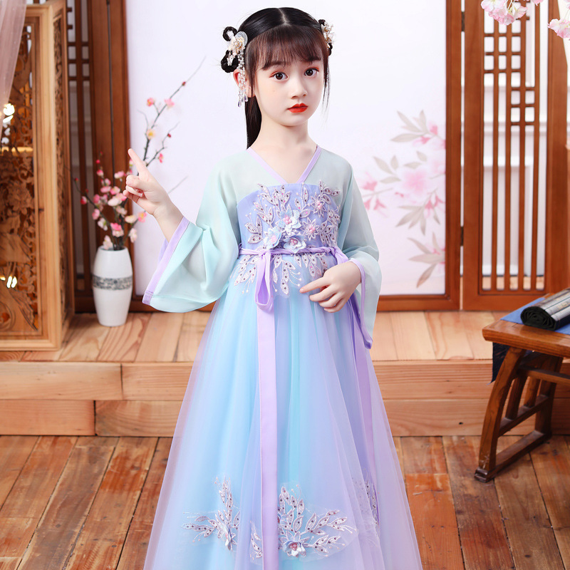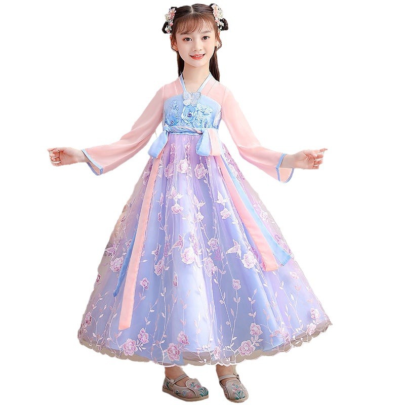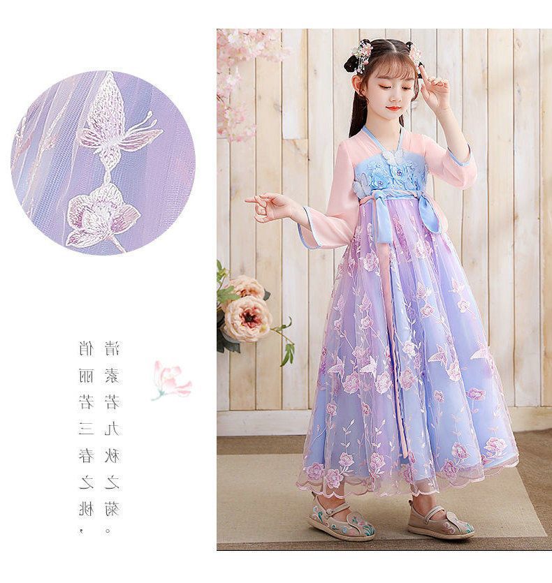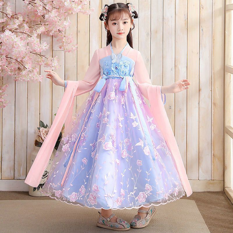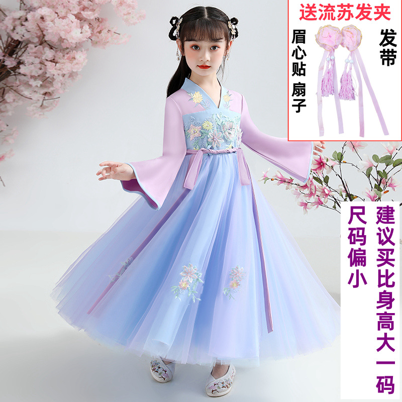 Осеннее платье для девочек 2024 новый стиль с длинными рукавами для детей Hanfu детская одежда платье принцессы девушки весна и осень юбка