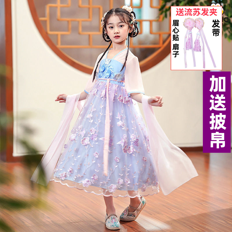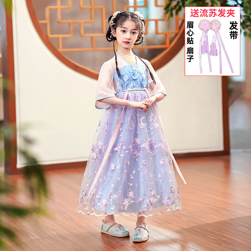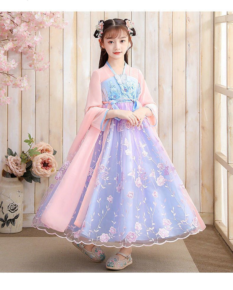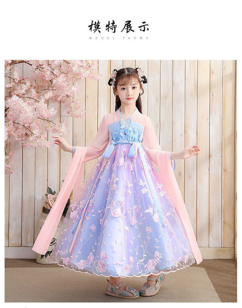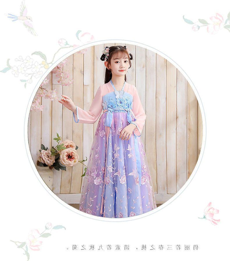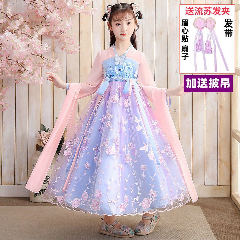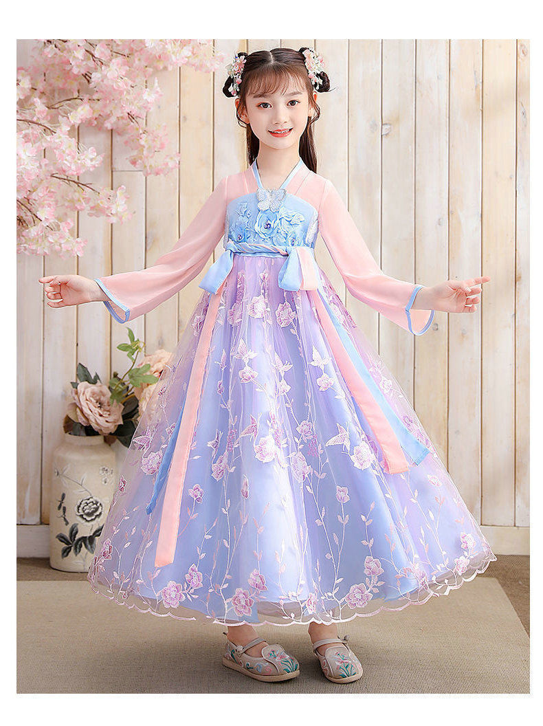 Осеннее платье для девочек 2024 новый стиль с длинными рукавами для детей Hanfu детская одежда платье принцессы девушки весна и осень юбка