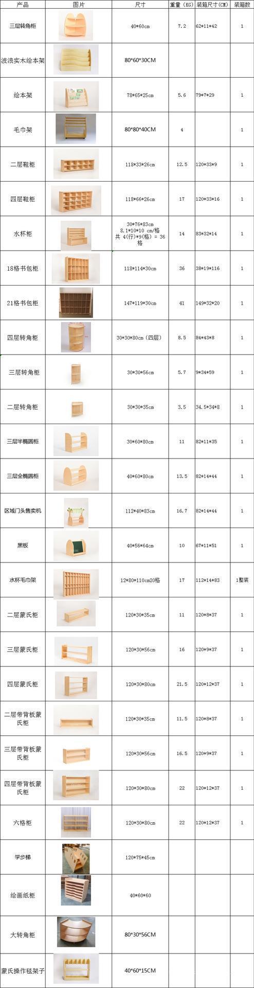 Двухслойный многоэтажный шкаф Монтеса 120*30*35cm; Трехслойный многоэтажный шкаф Монтеса 120*30*56cm; Четырехслойная доска шкаф Монтеса 120*30*80cm; Второй этаж с задней панелью шкаф Монтеса 120*30*35cm; Три этажа с задней панелью шкаф Монтеса 120*30*56cm; Четыре слоя с задней панелью шкаф Монтеса 120*30*80cm; Двухслойный многоэтажный угловой шкаф 30*30*35cm; Три слоя многослойной панели угловой шкаф 30*30*56cm; Четырехслойный многоугольный шкаф 30*30*80cm; Обувной шкаф на втором этаже 118*33*26cm; Трехслойный полуовальный шкаф 30*60*80cm; Трехслойный полный овальный шкаф 40*60*80cm; Торговый автомат 112*83*40cm; Удержатель книжки с картинками 74*65*28cm; Волнистая деревянная книжка с картинками 80*60*30CM; Овальный угловой шкаф 40*60cm; 18 сетки шкаф 118*114*30cm; Стакан для воды шкаф 30*76*83cm; Стакан для полотенец 110*80*12cm20 сетка; Съемная вешалка для полотенец 80*80*40cm; Одеяла Монтеса 40*60*15CM