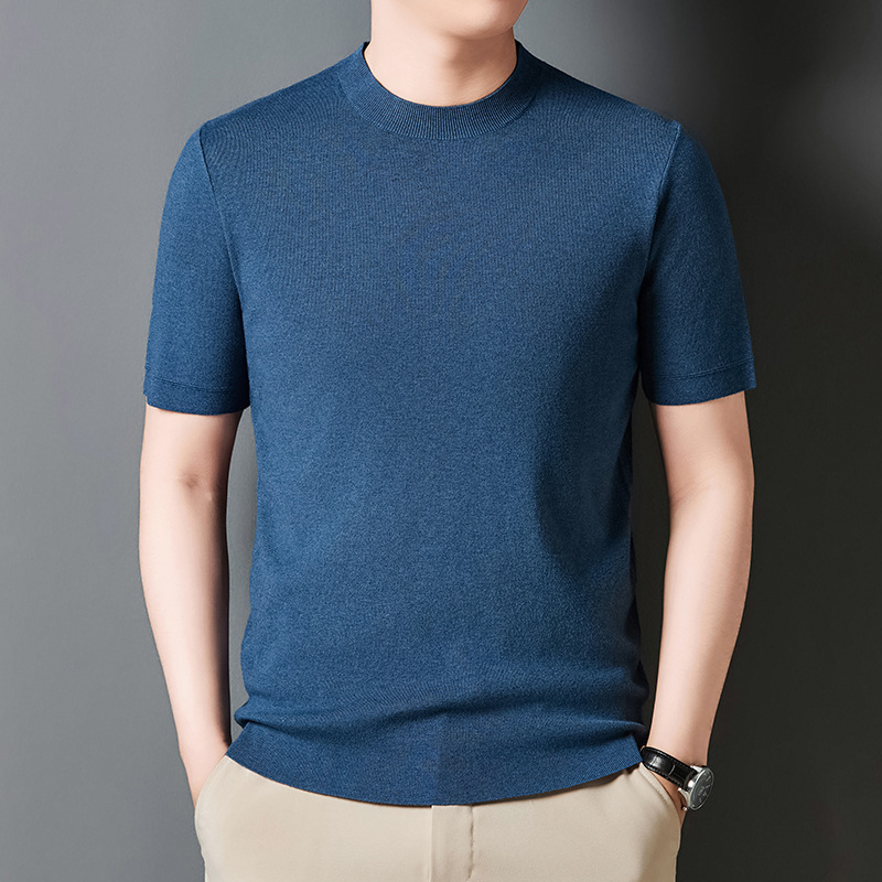 Камвольная шерстяная футболка с круглым вырезом не легко изгонять мягкие высококачественные мужские трикотажные T с короткими рукавами