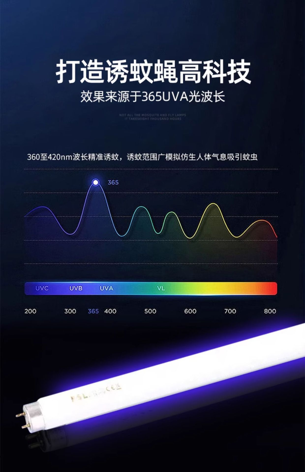 Foshan Lighting T8 Лампа от комаров Лампа от комаров Синий фиолетовый световой луч T8 Лампа от комаров Длинная люминесцентная лампа UVA
