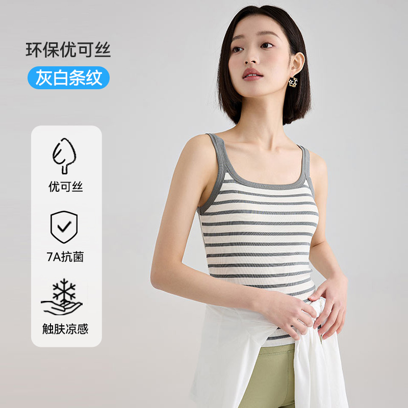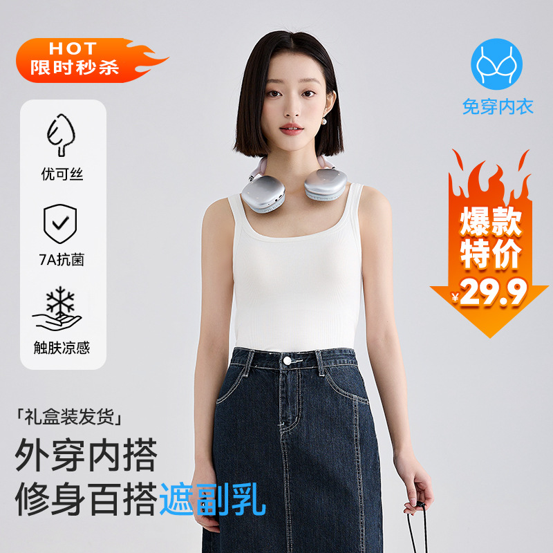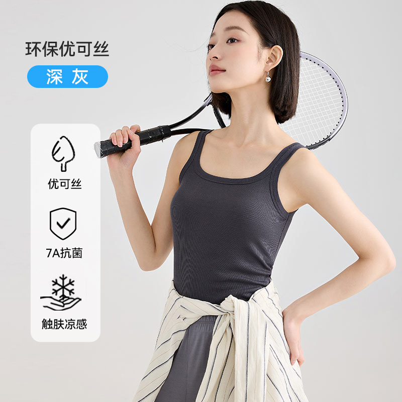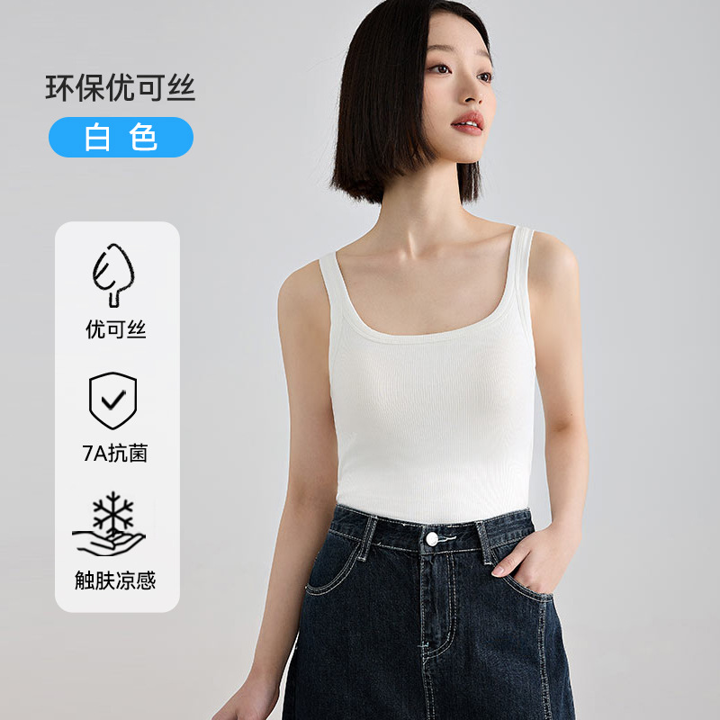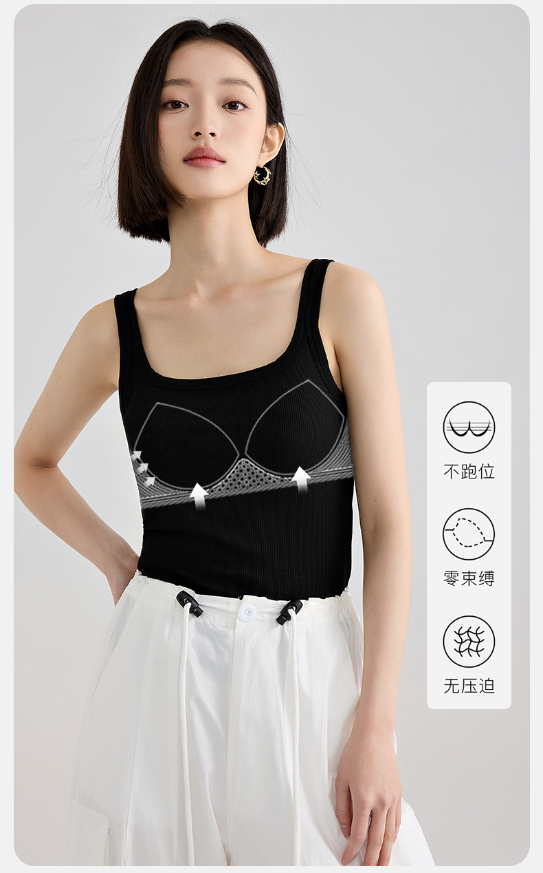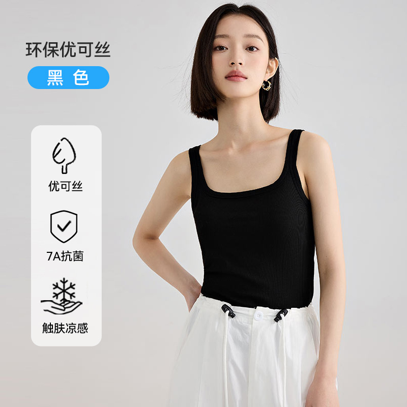 [Cool Eco Silk] Красивый жилет с нижней частью спины и нагрудными подушечками для женщин, летняя квадратная шея с подтяжкой из ледяного шелка с открытой спиной