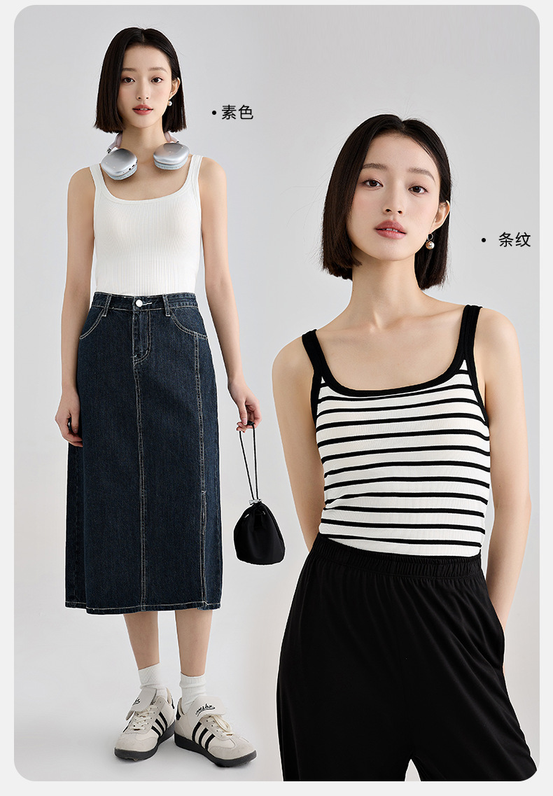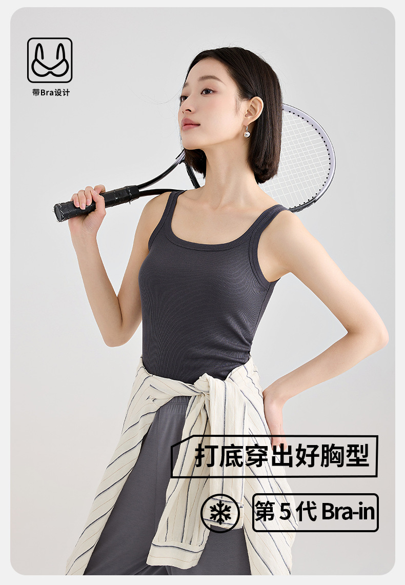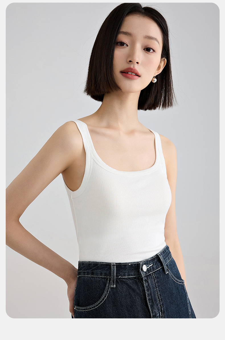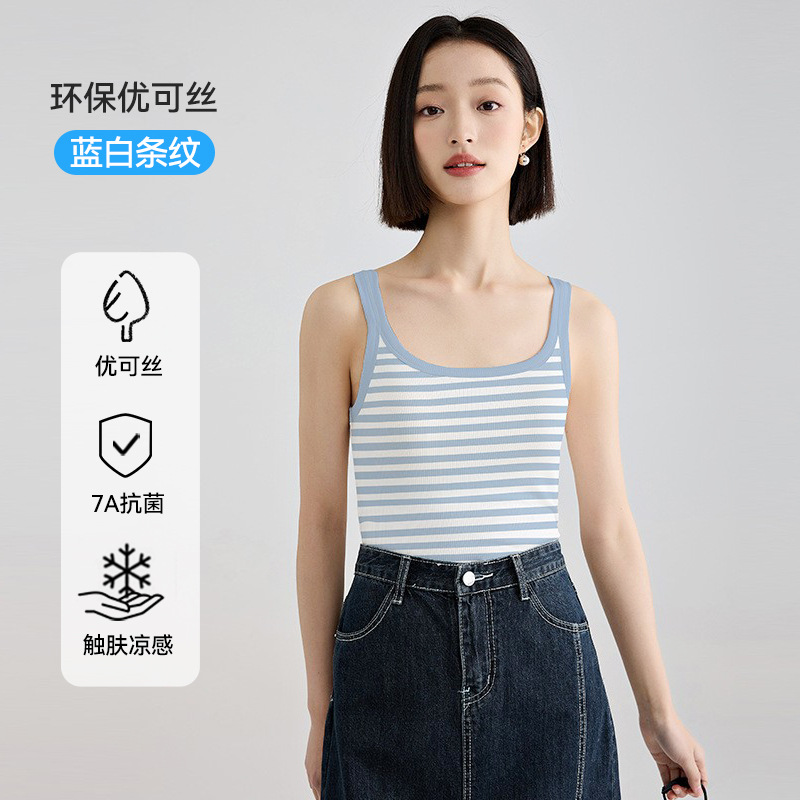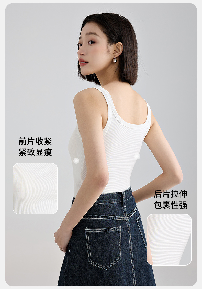 [Cool Eco Silk] Красивый жилет с нижней частью спины и нагрудными подушечками для женщин, летняя квадратная шея с подтяжкой из ледяного шелка с открытой спиной