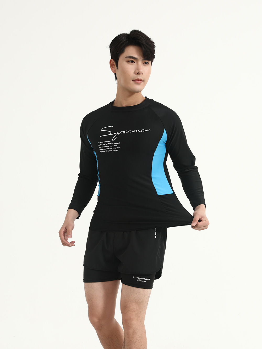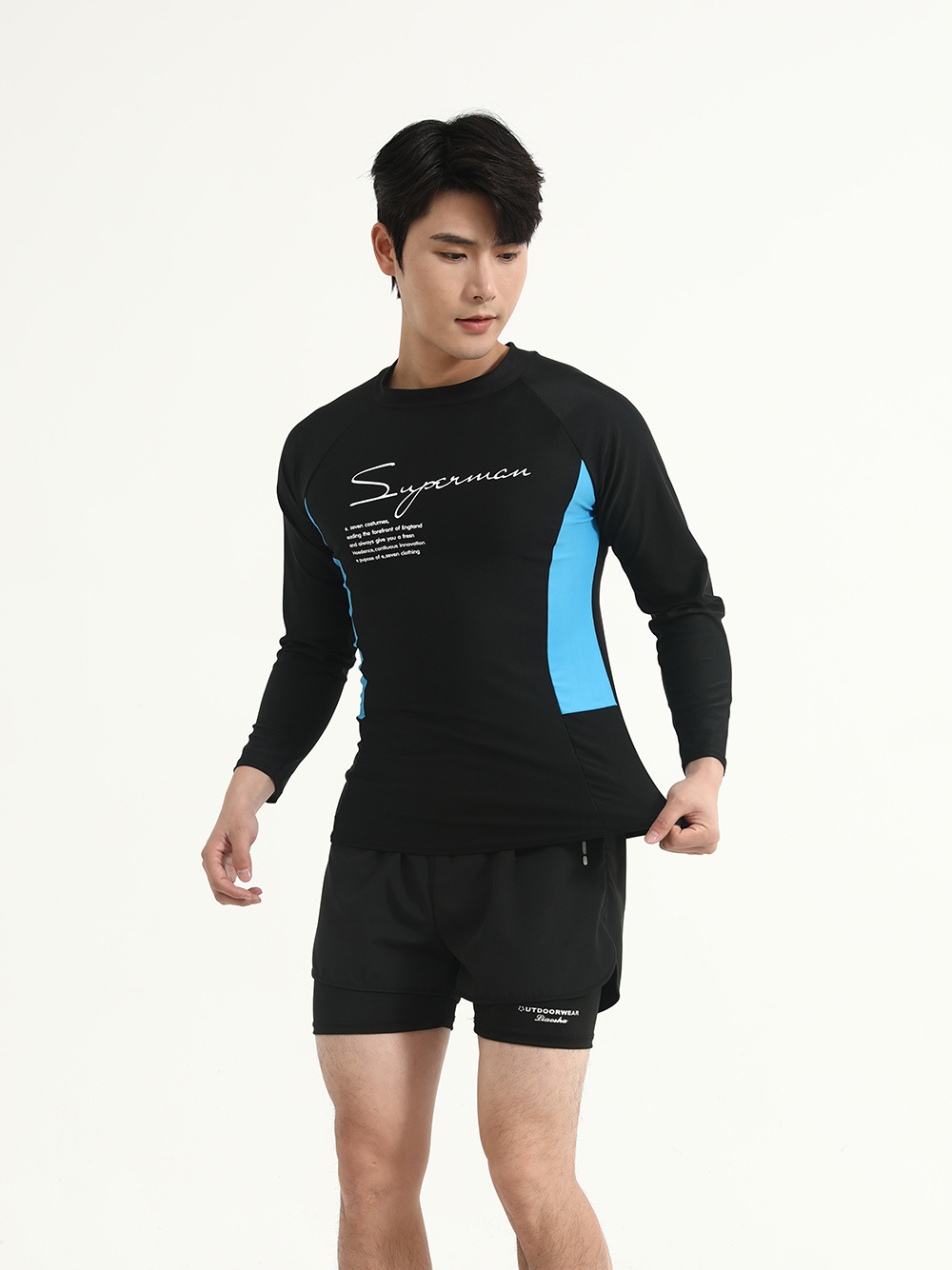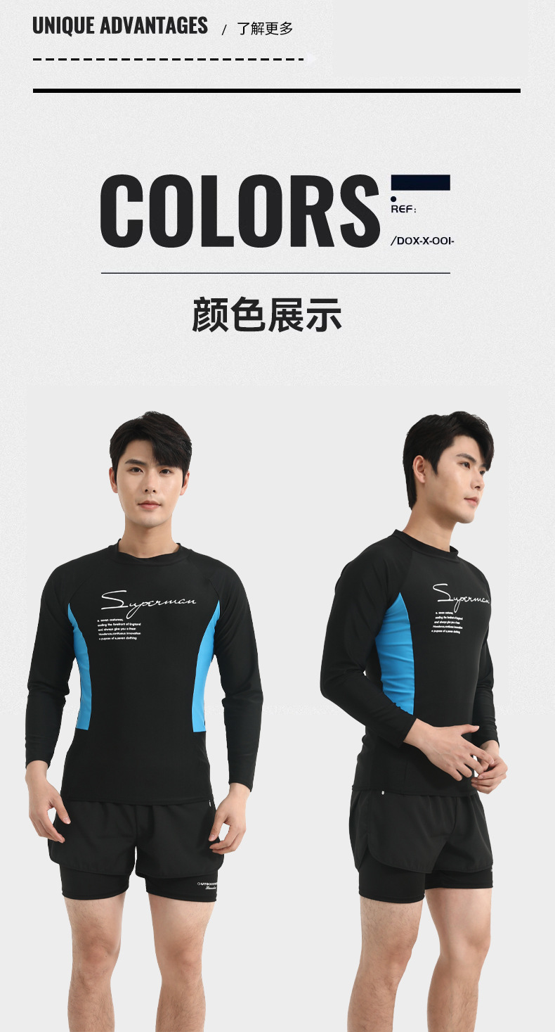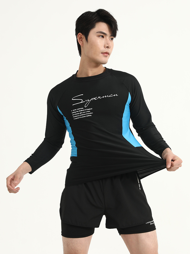 Color Color Мужской купальный костюм с длинными рукавами солнцезащитный крем для взрослых плюс размер плавки двойной слой анти-неловкие шорты
