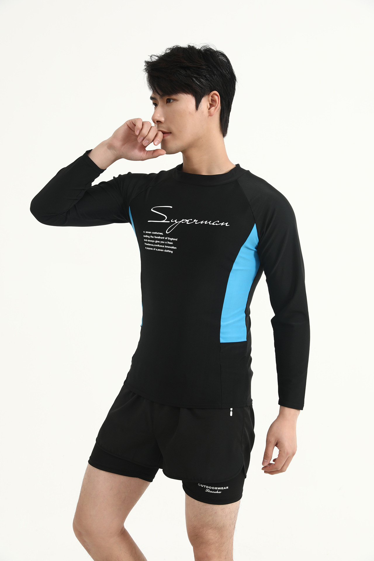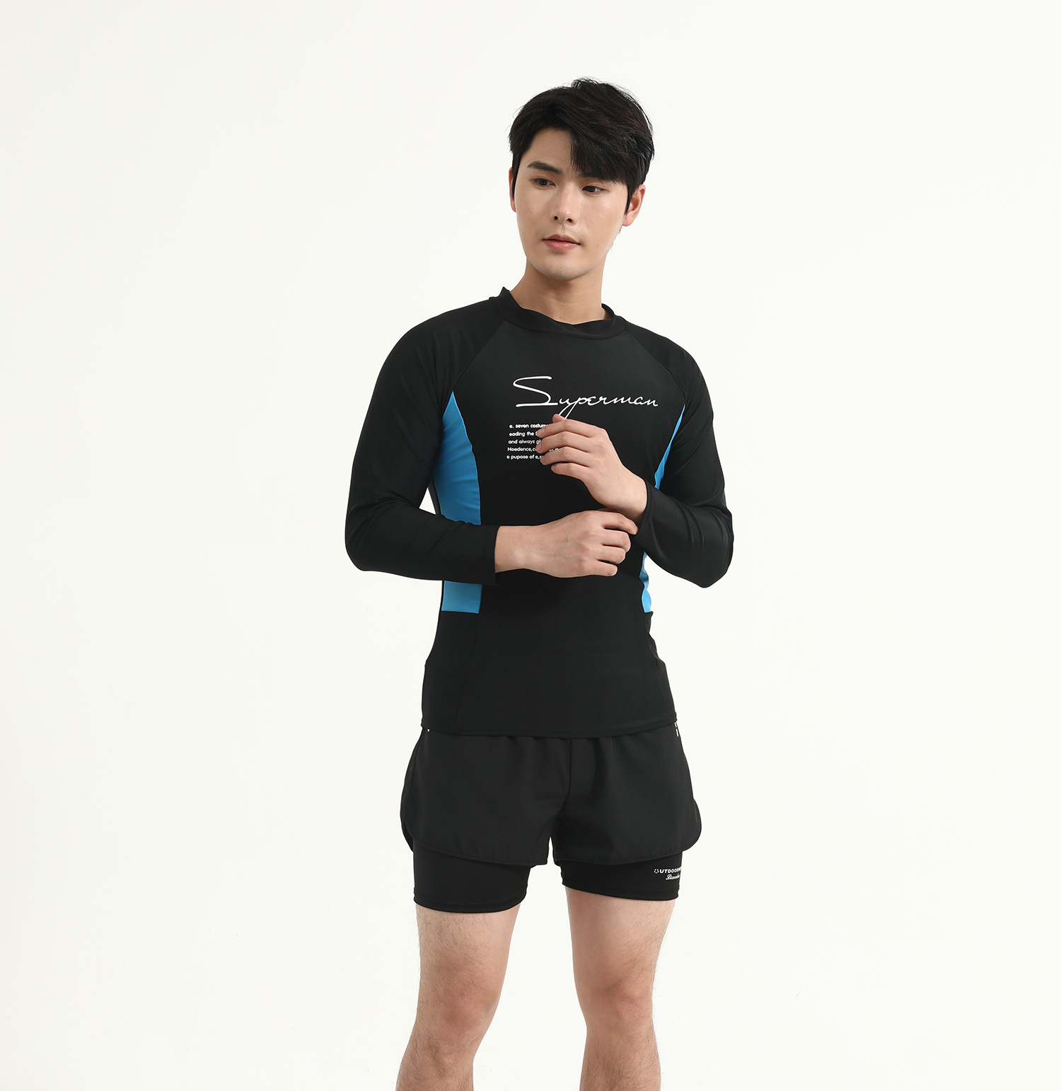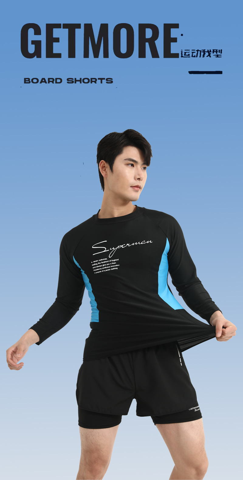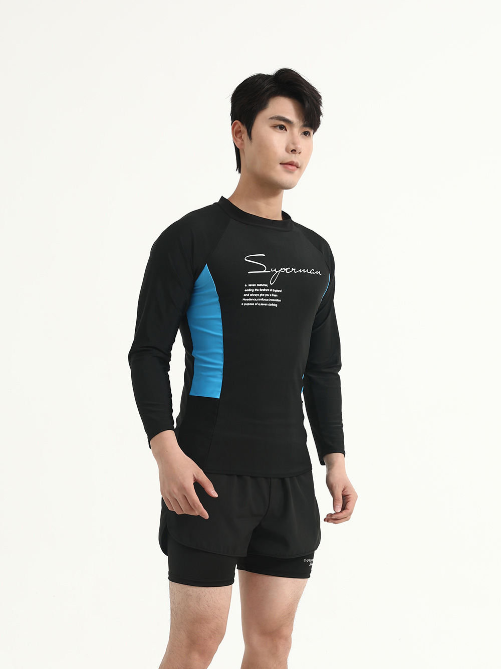 Color Color Мужской купальный костюм с длинными рукавами солнцезащитный крем для взрослых плюс размер плавки двойной слой анти-неловкие шорты