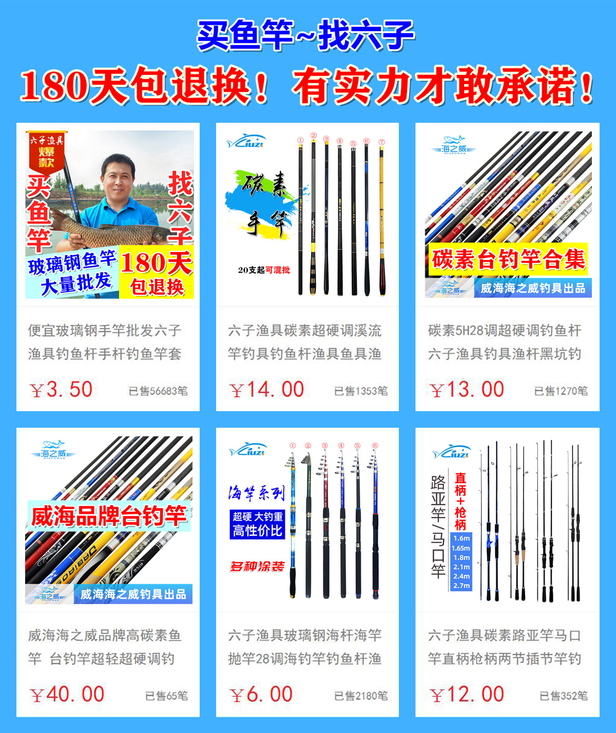 Дешевая FRP ручная удочка оптовая продажа шесть рыболовных снастей