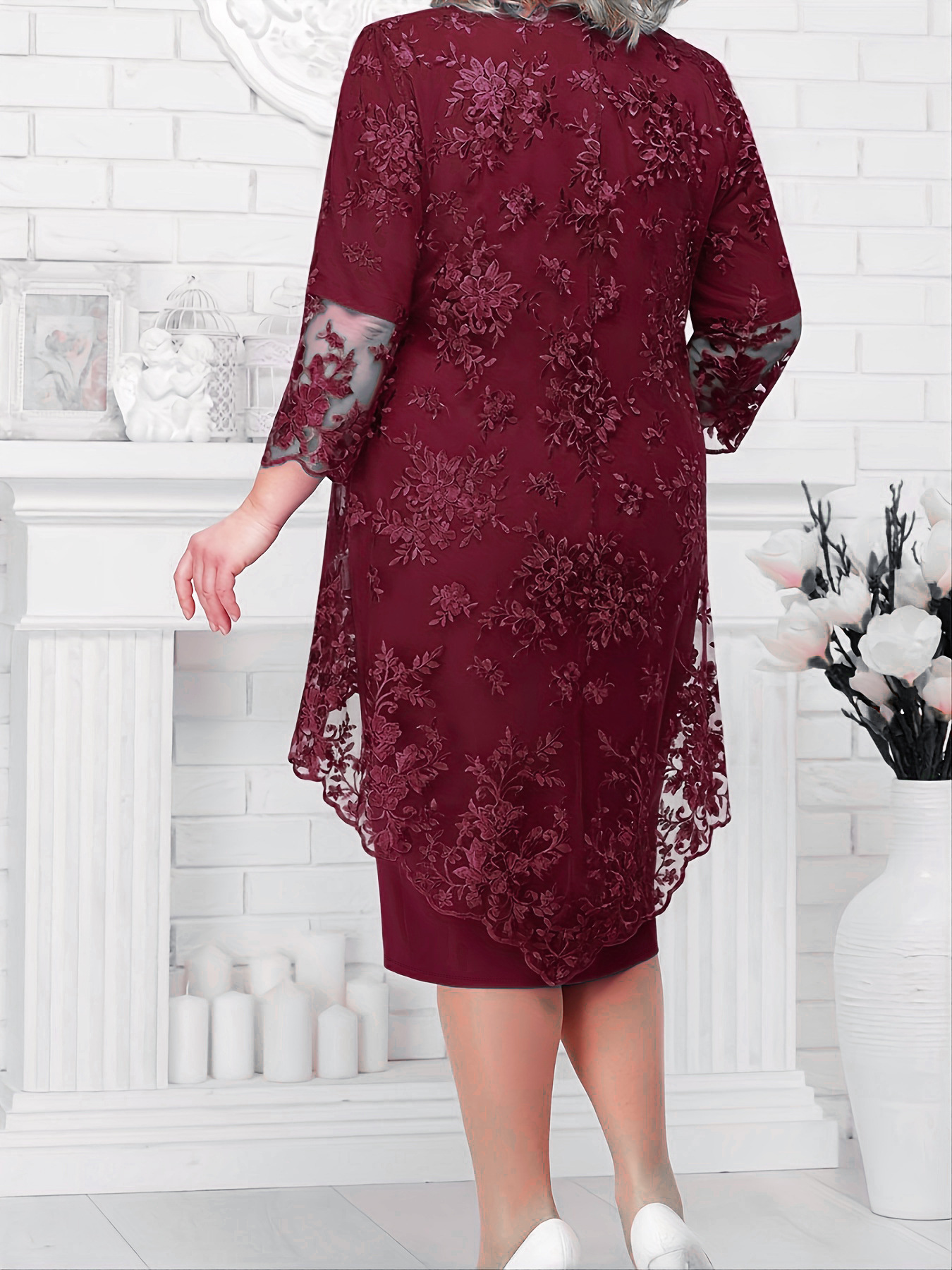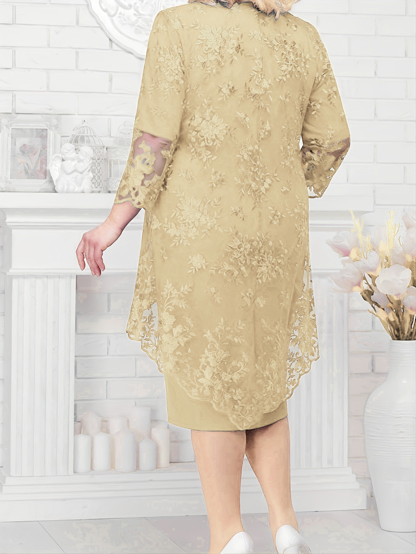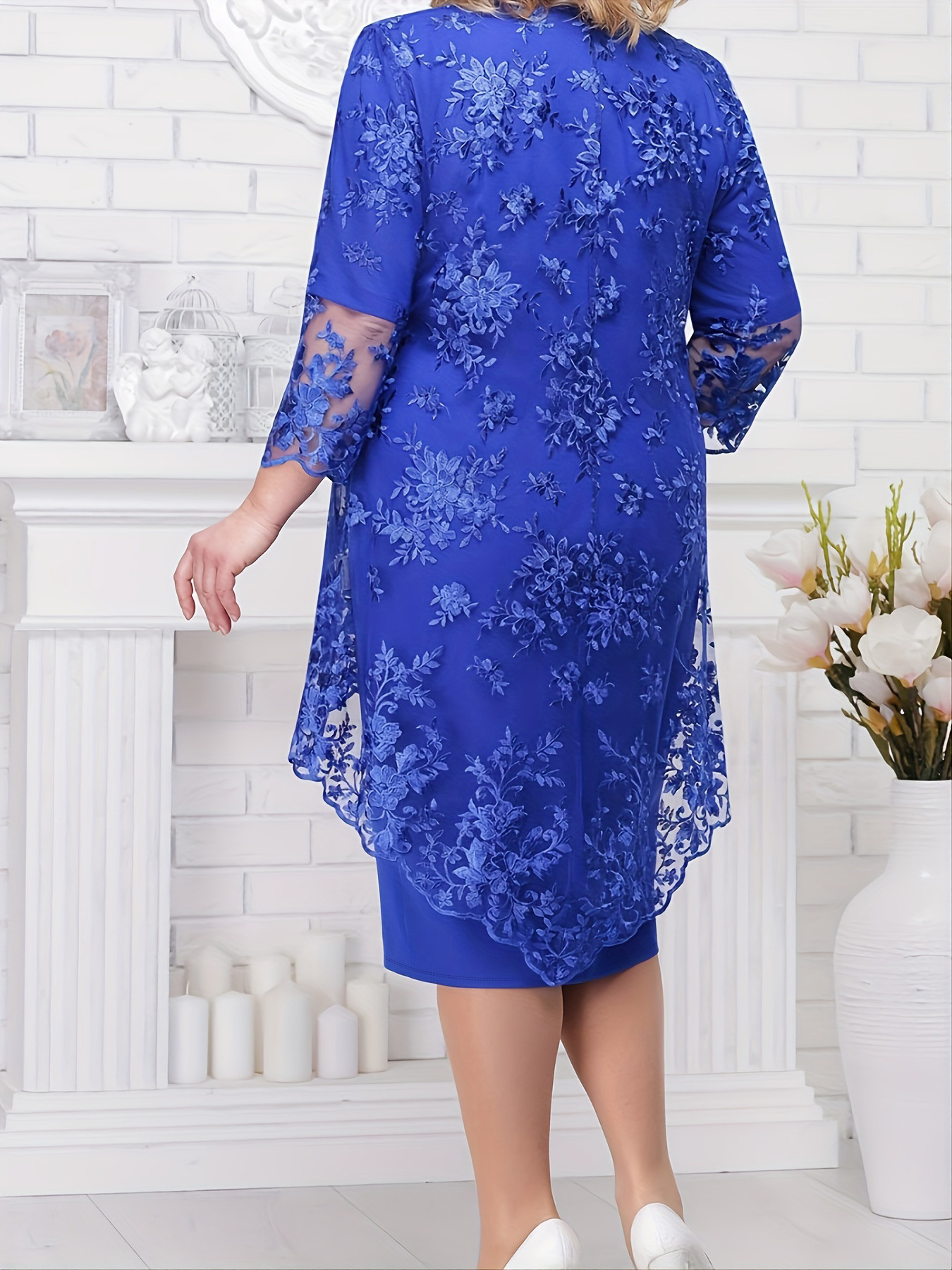 Новое женское вечернее платье больших размеров в европейском и американском стиле с тяжелой кружевной вышивкой, комплект из двух предметов, элегантный и облегающий для поездок на работу.