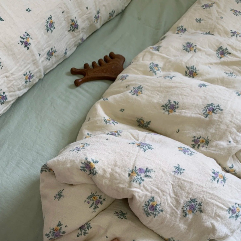 Комплект из четырех предметов из двухслойной хлопковой марли класса А, дышащий комплект из чистой хлопковой марли для матерей и младенцев, комплект из трех предметов для общежития, свежий стиль.