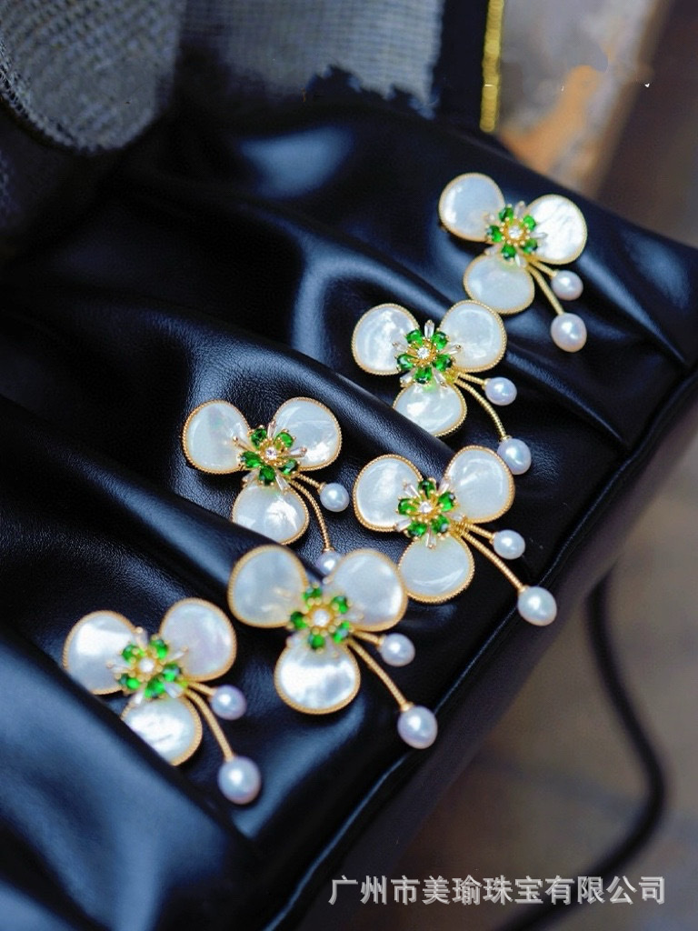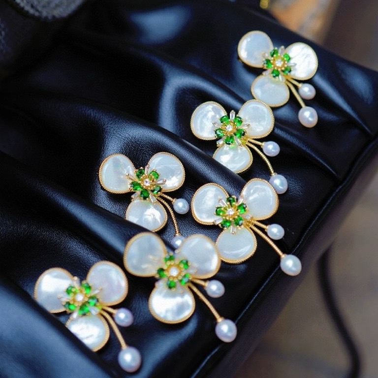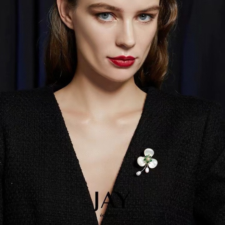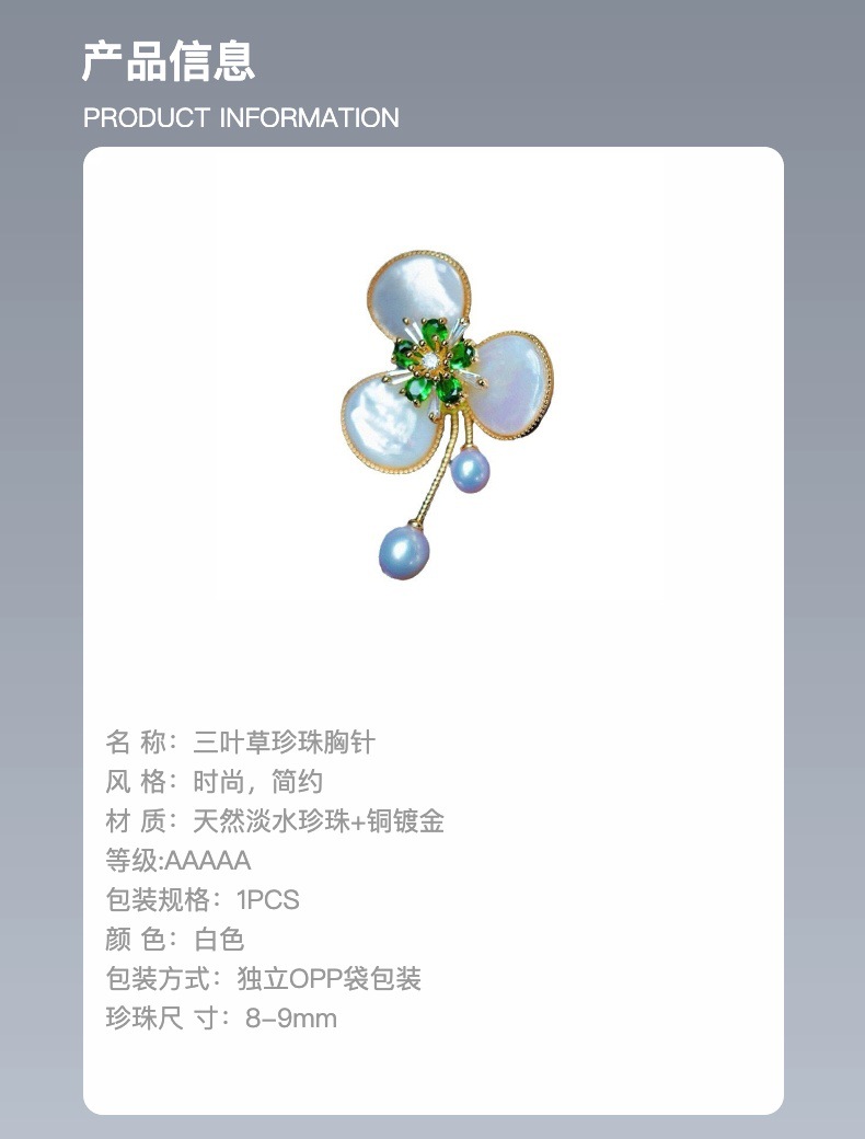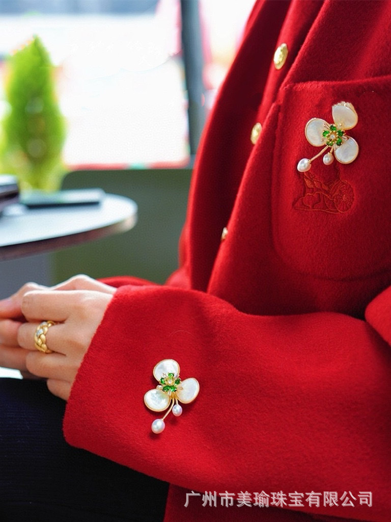 Готовый продукт: брошь-клевер из натурального жемчуга для женщин, дизайн с защитой от просвечивания, нишевая брошь-заколка, художественный стиль.
