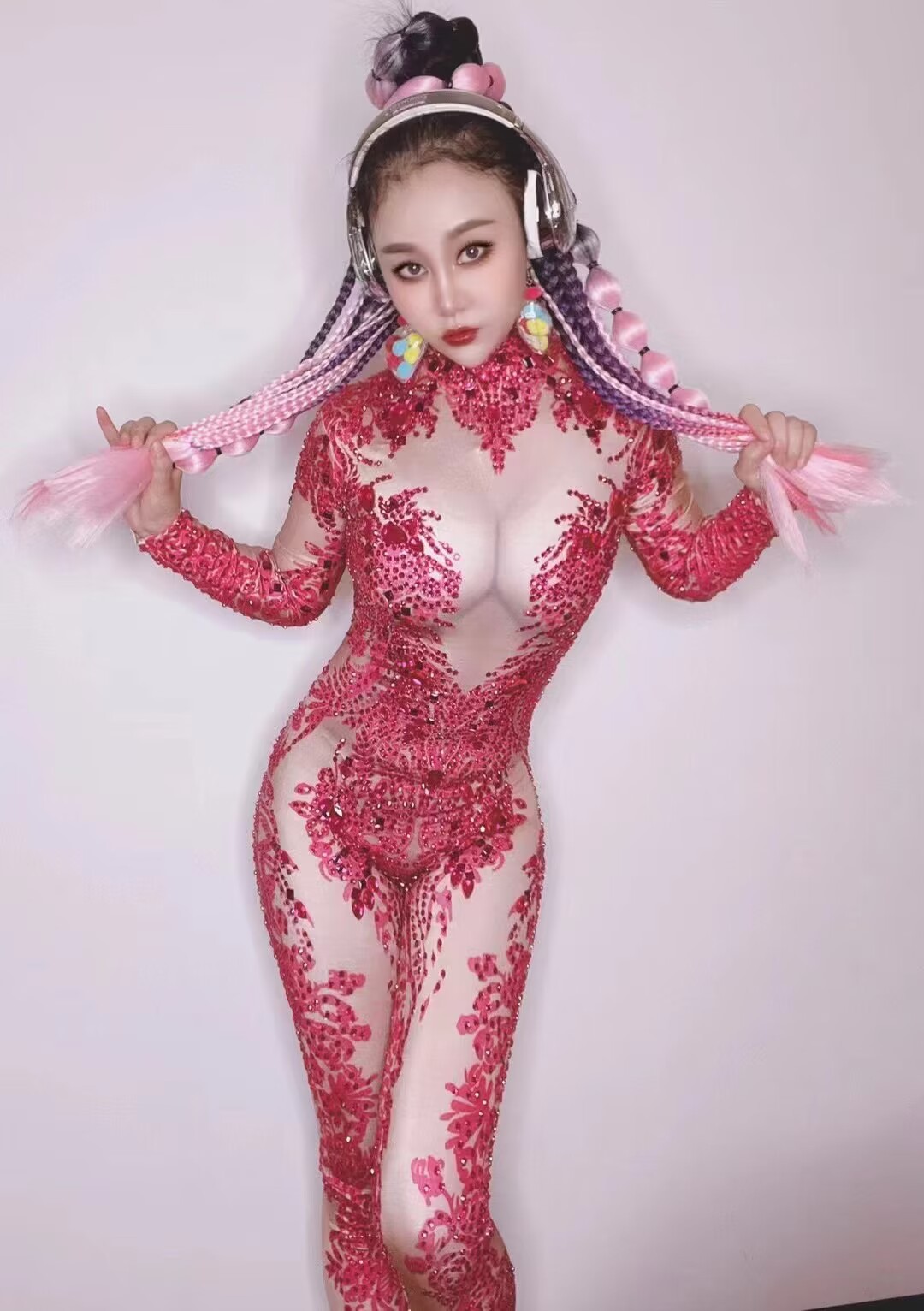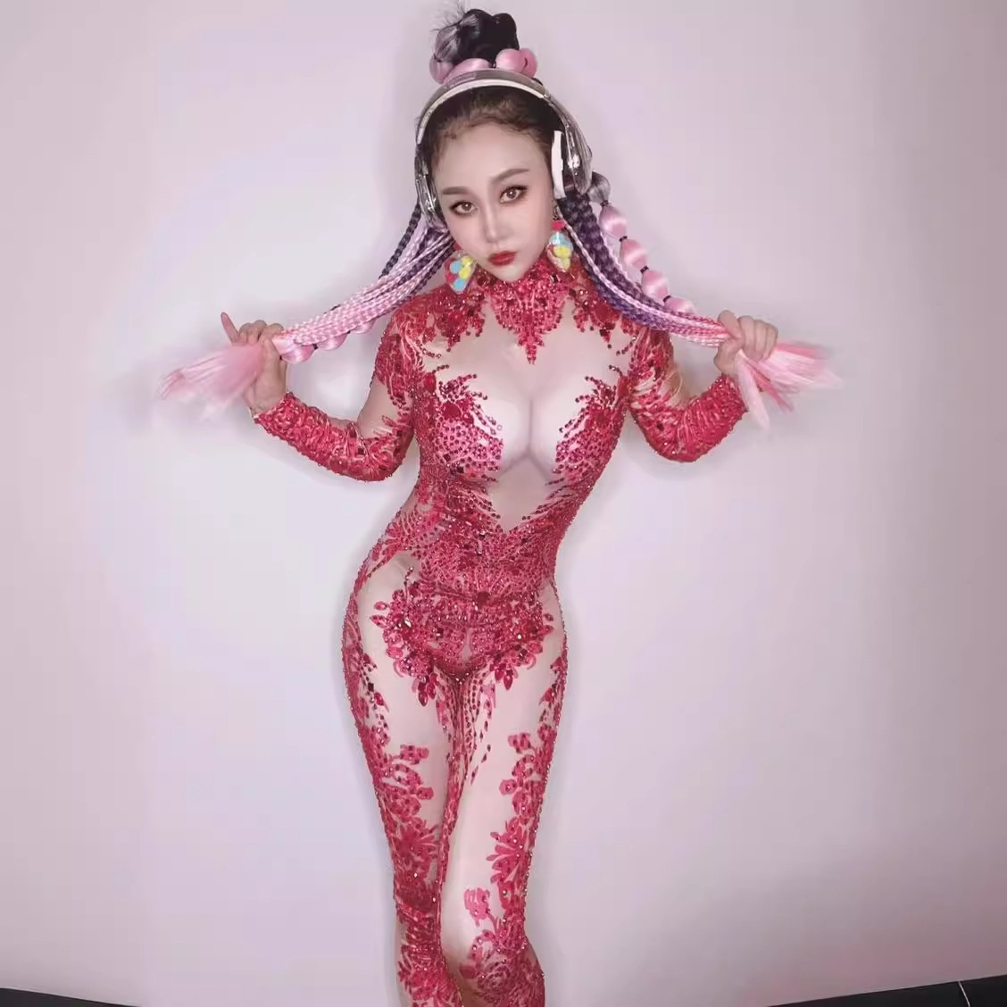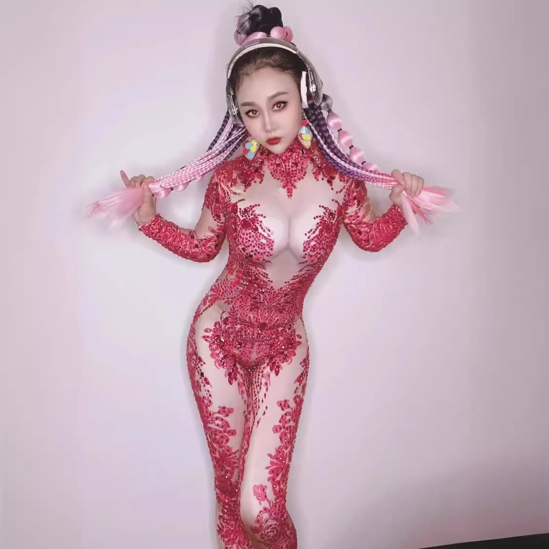 Готовый костюм для выступлений в ночных клубах и барах, женский комбинезон с длинными рукавами, полностью украшенный стразами, с принтом под кожу и синими виноградными гроздями, для вечеринок и дней рождения