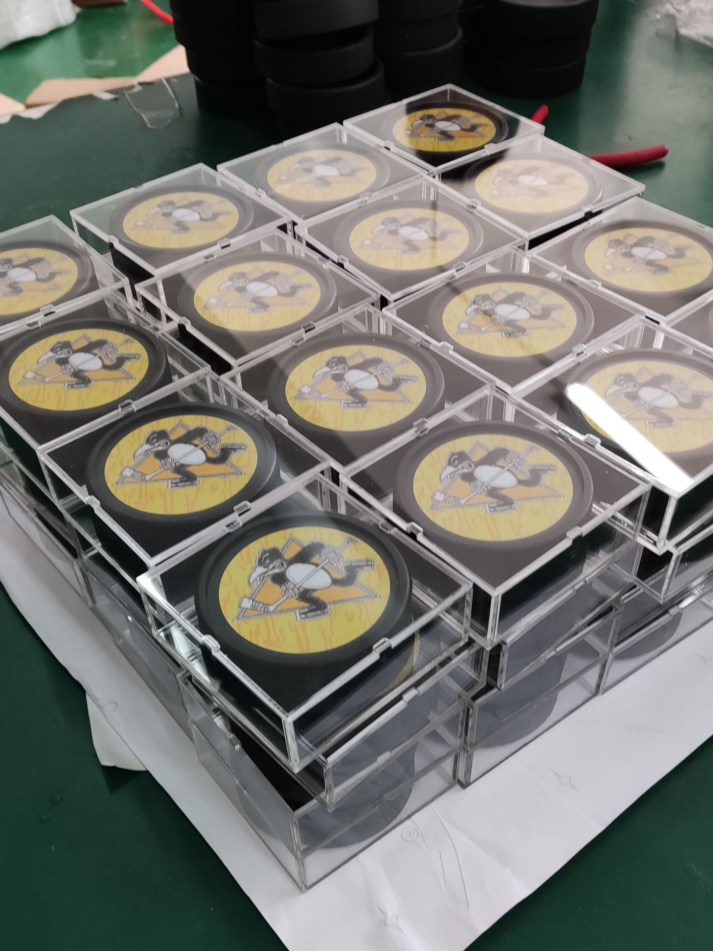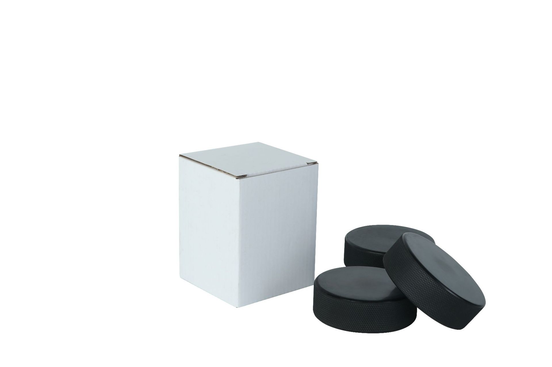 Набор из 4 белых хоккейных шайб HOCKEYPUCK в коробке, резиновые, из цельного полиуретана, профессиональные, для соревнований, мягкие, заводского производства