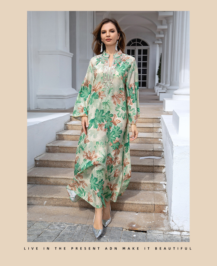 Летнее платье-абайя с принтом, длинная юбка, мусульманское платье для экспортного рынка Ближнего Востока, Дубай.