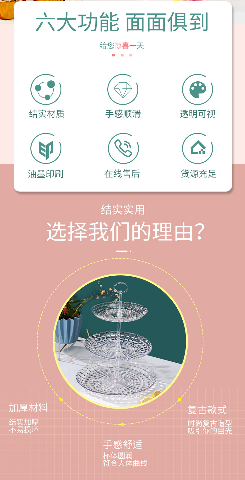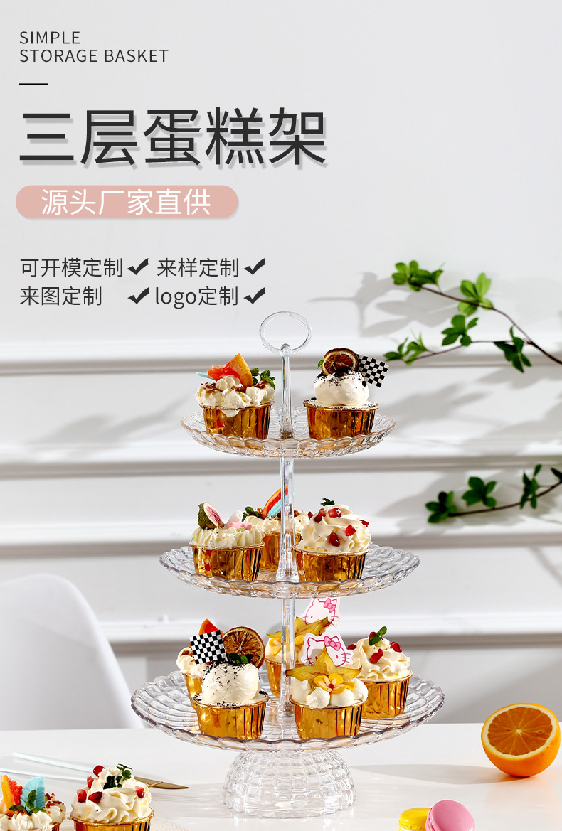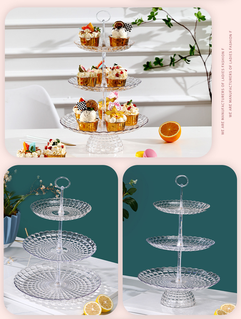 Европейская минималистская пластиковая подставка для торта высокого уровня трехслойная фруктовая подставка для послеобеденного чая