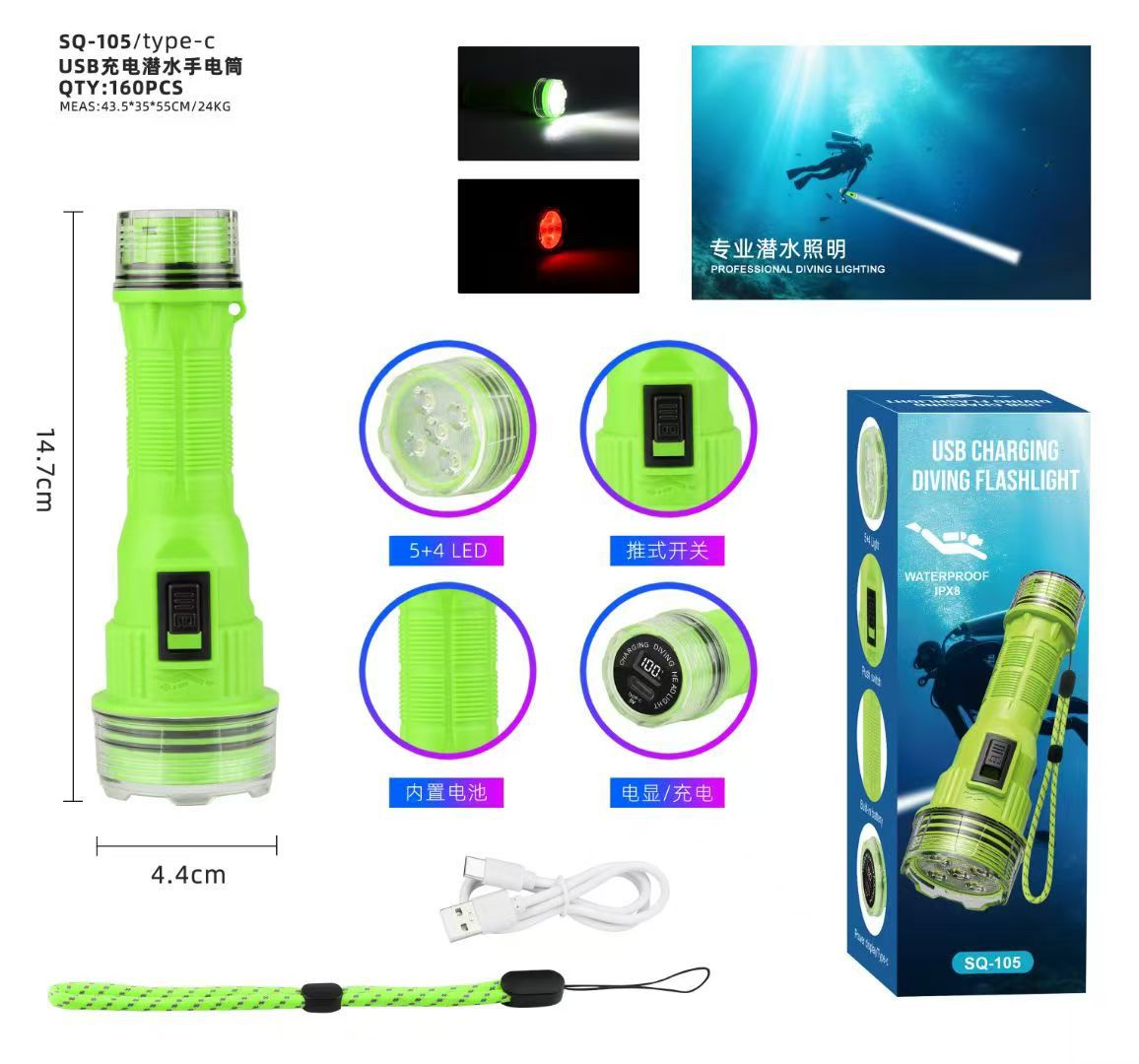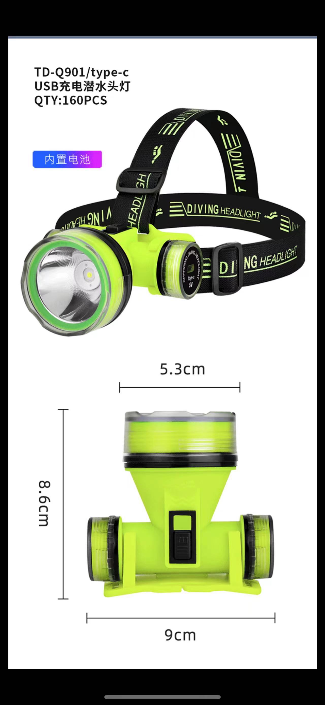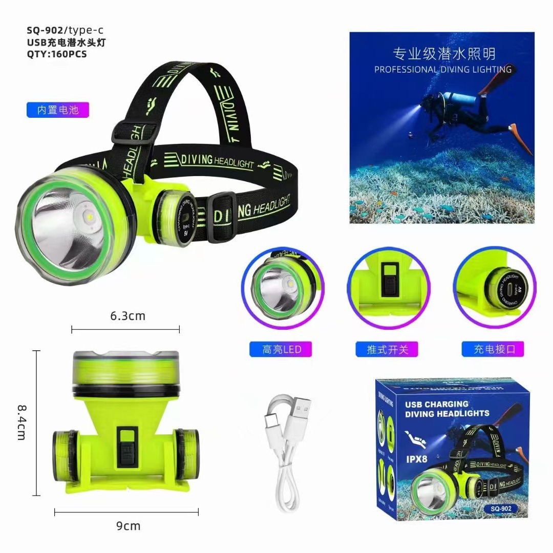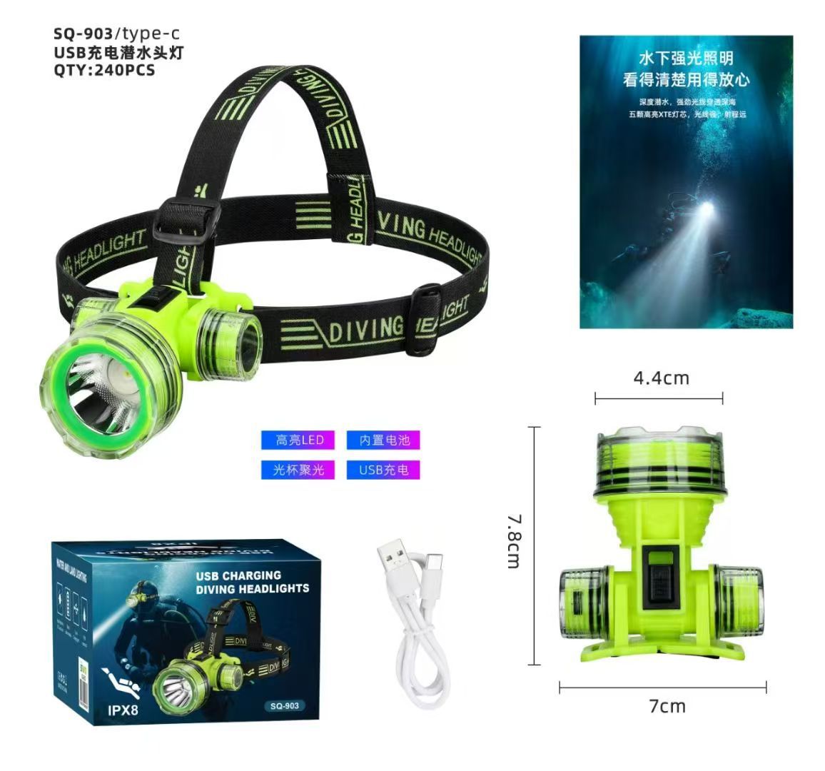 Новая сверхъяркая светодиодная налобная лампа для ночной рыбалки на открытом воздухе с мощным светом, длительным сроком службы батареи и высокой мощностью, подводная фара 901.