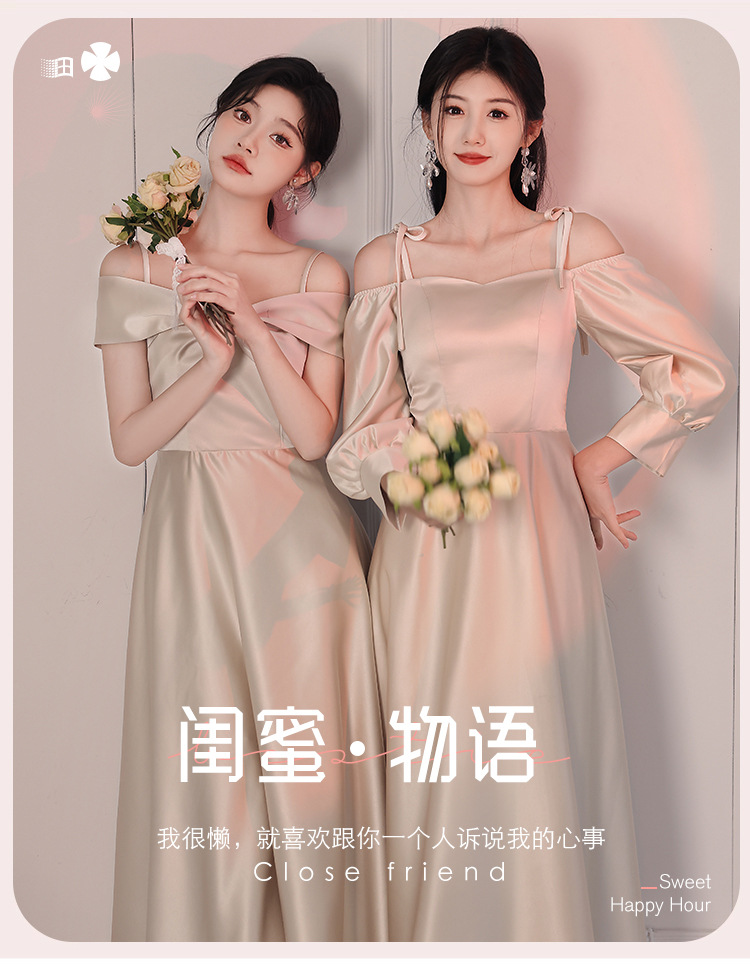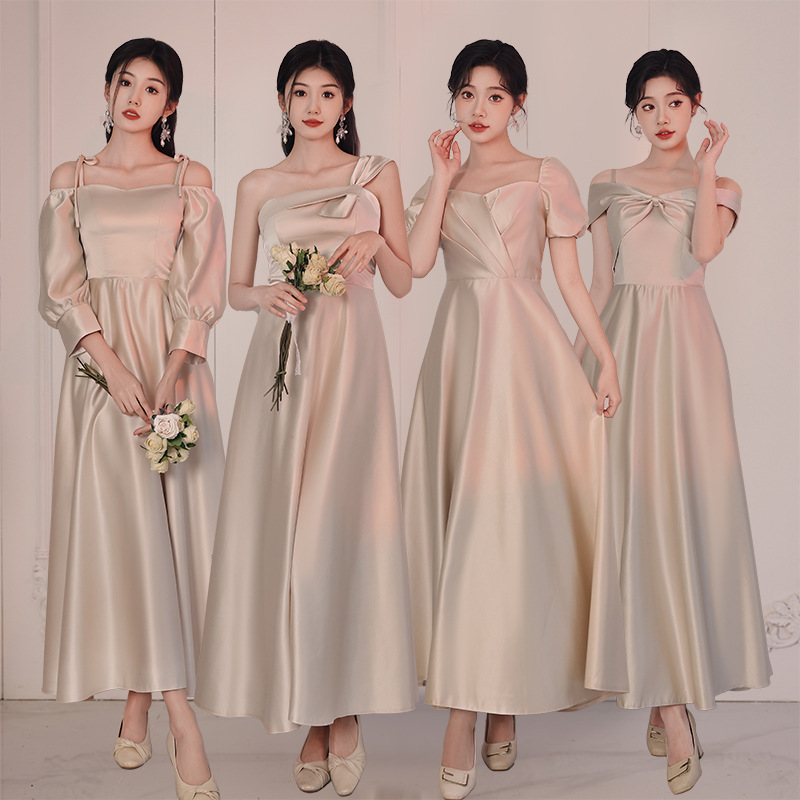 Платье для подружки невесты 2024 новый стиль сестричка платье группа подружки невесты платье длинное платье минималистское атласное ниша большой размер весна и лето девушка