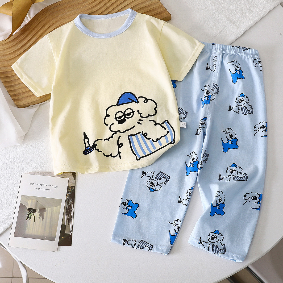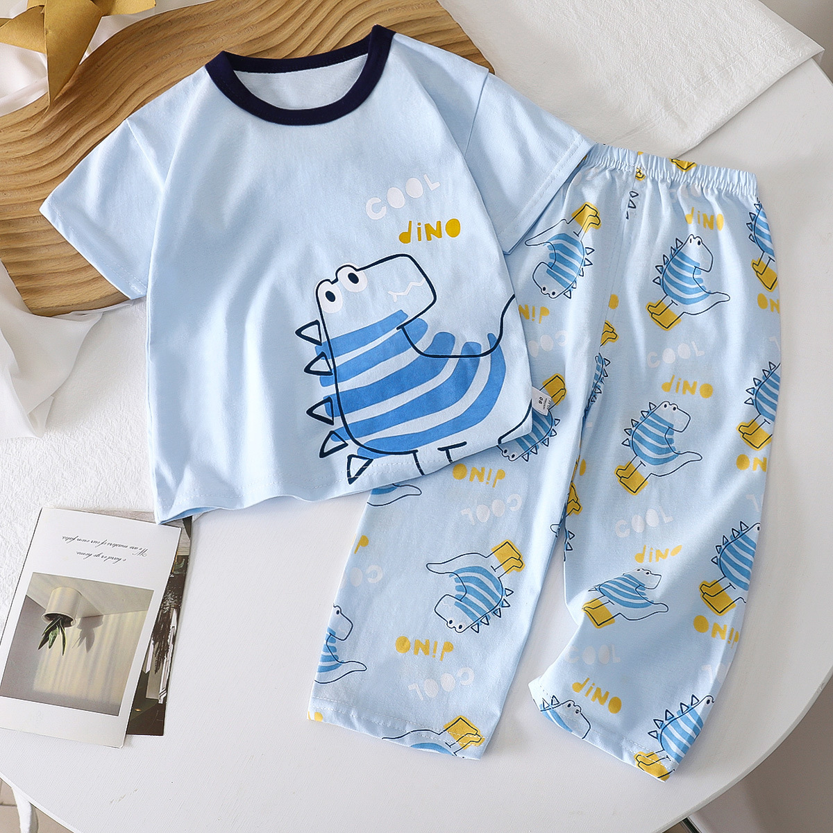 Детский комплект с короткими рукавами летняя новая хлопковая пижама для мальчиков