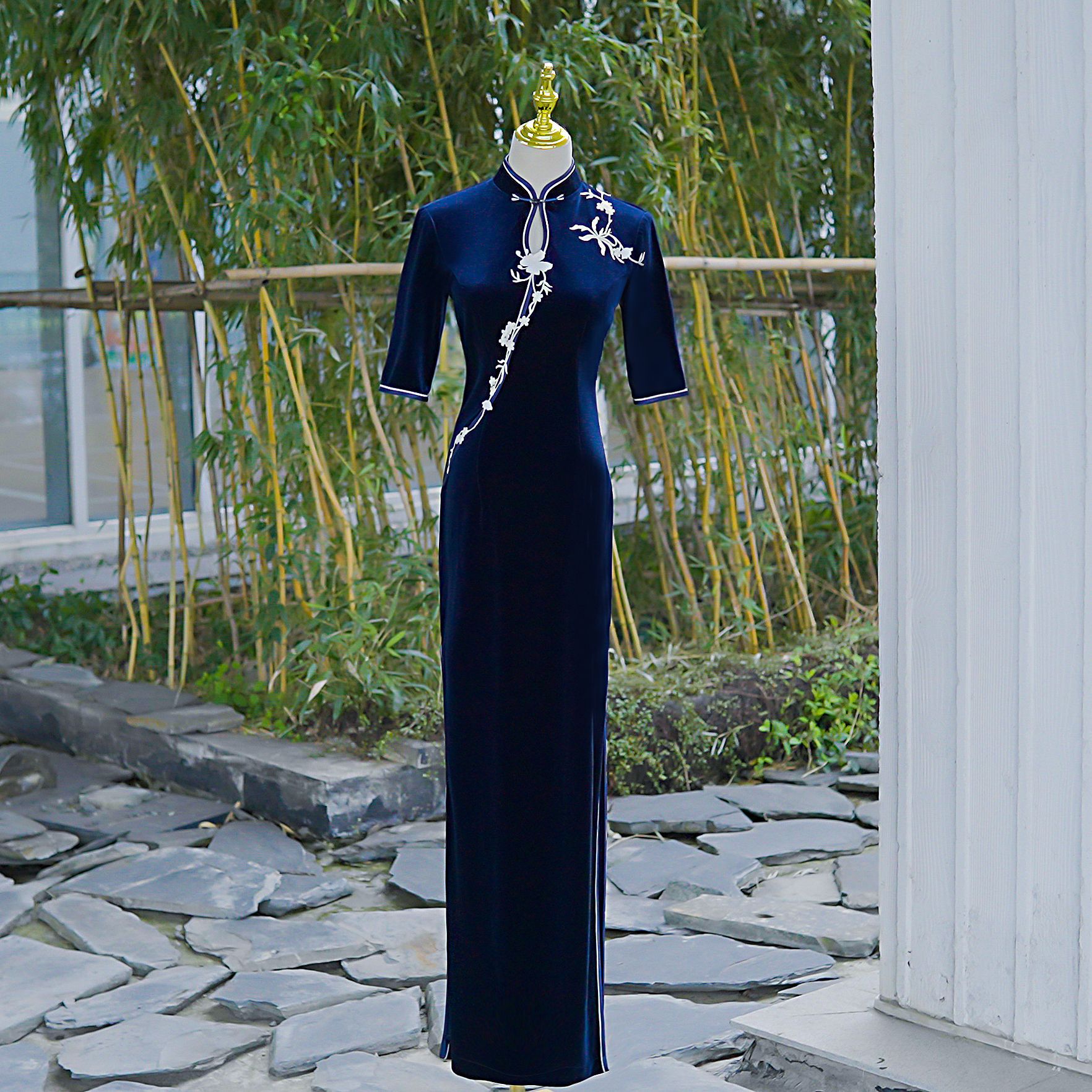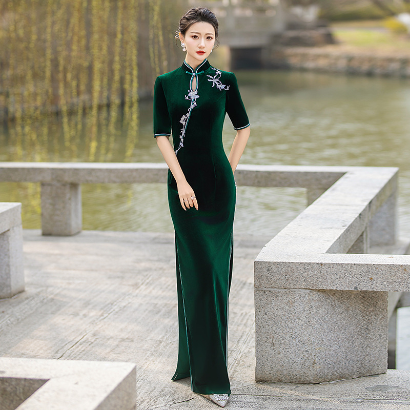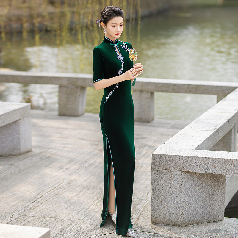 Прямые поставки с фабрики: бархатное чхонсам 2025 – новая модель, ретро-чхонсам для выступлений в китайском стиле с изысканными узорами.