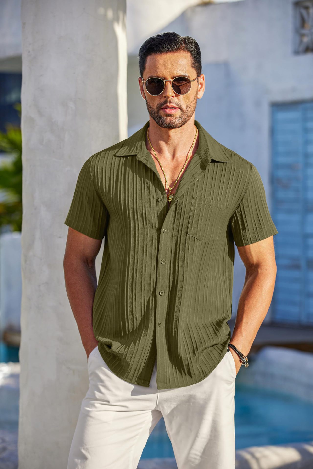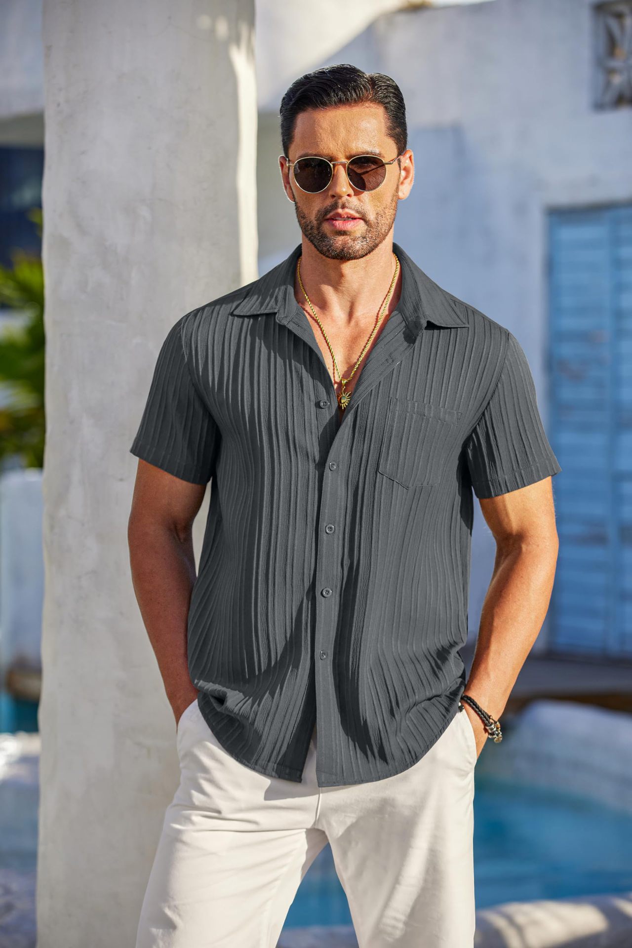 Мужская рубашка с коротким рукавом и отложным воротником, однотонная, на пуговицах, универсальная, повседневная, коллекция Amazon Summer 2024