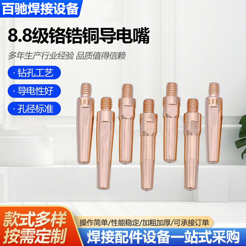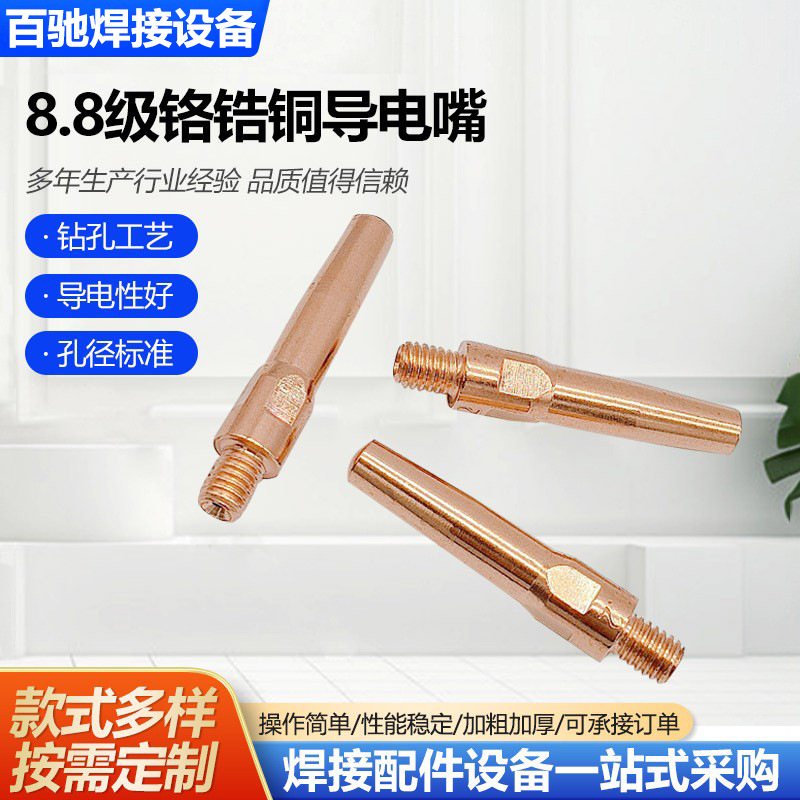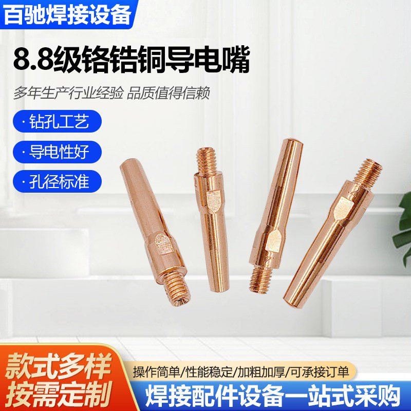 Производитель поставляет утяжеленное проводящее сопло из хром-циркониевой меди, сварочное пистолет с газовой защитой класса 8,8, прецизионное сопло из проводящей проволоки, медное проводящее сопло