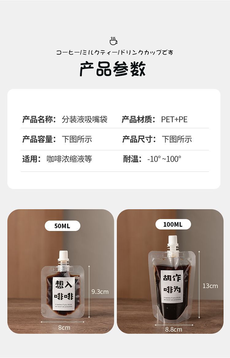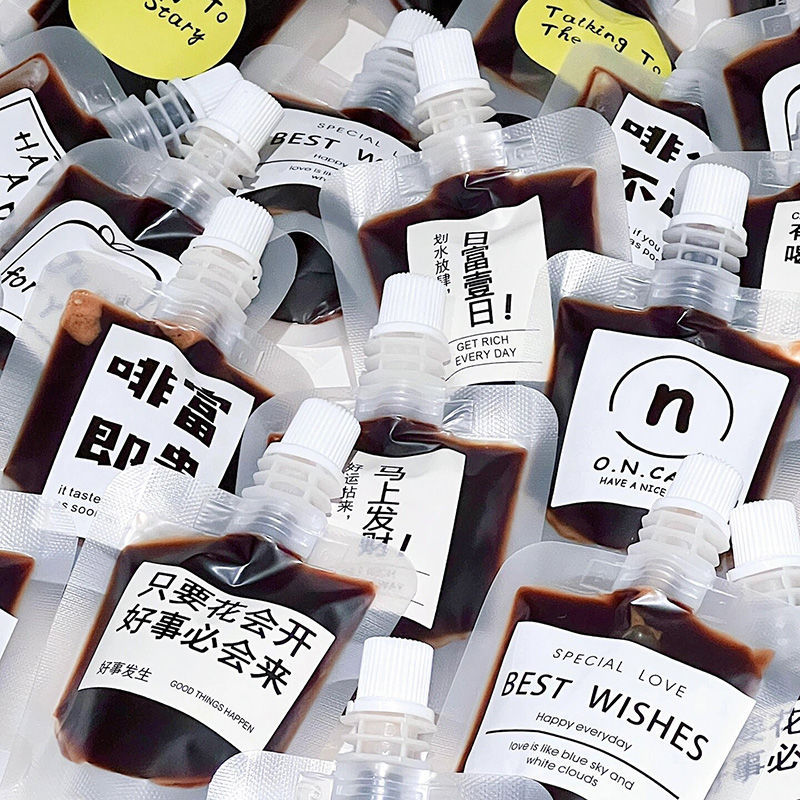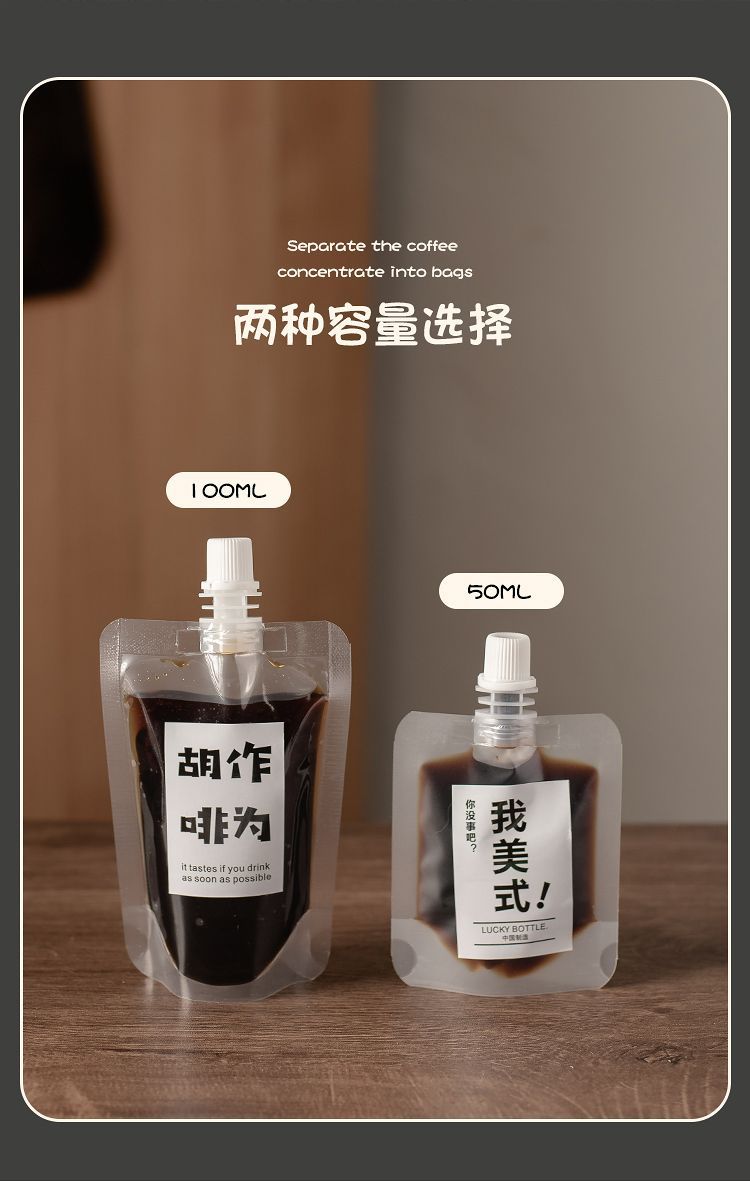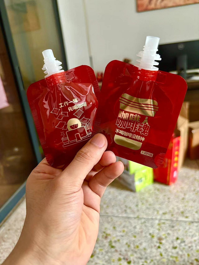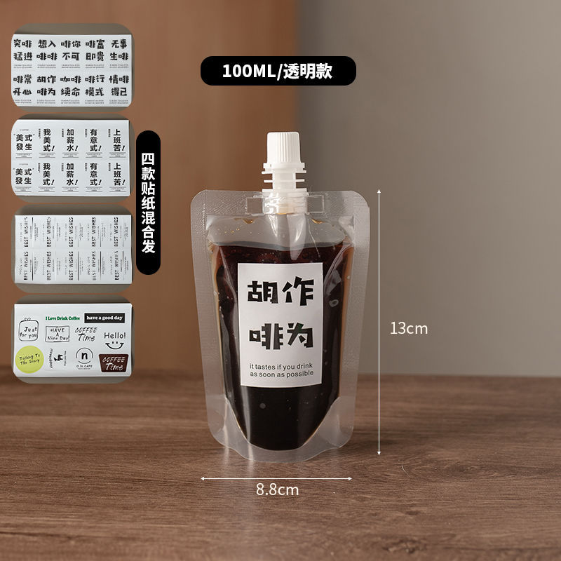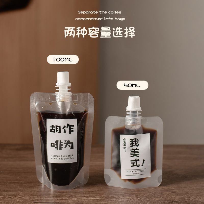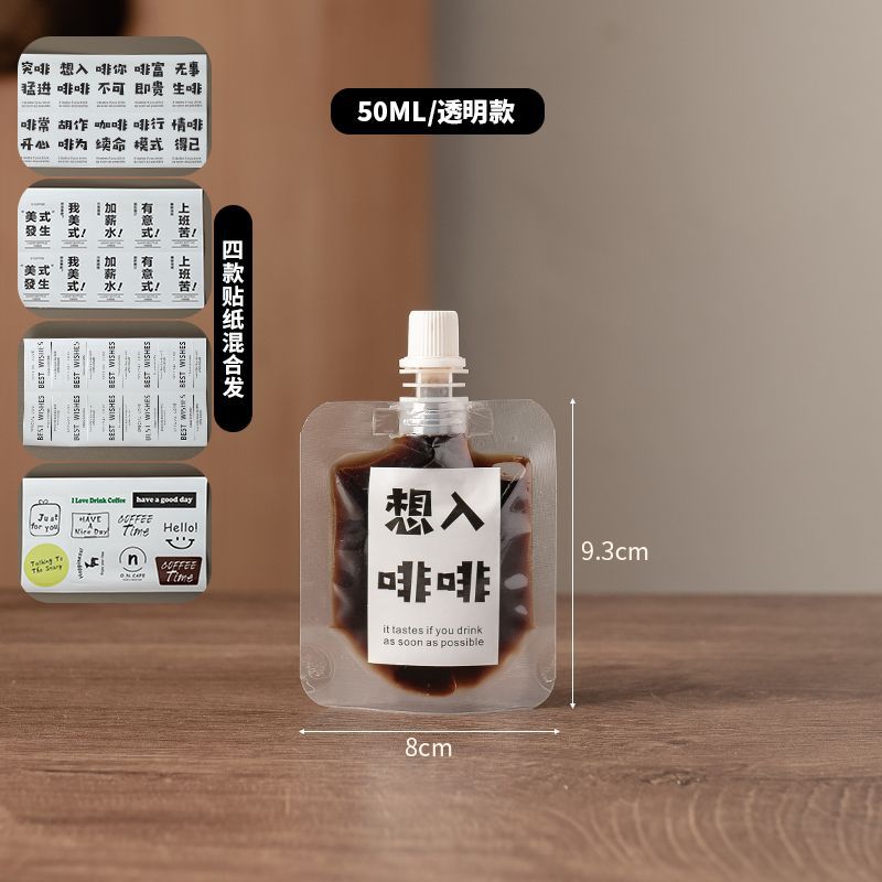 Упаковочный пакет для насадки для кофе [50 мл] + наклейка; Упаковочный пакет для насадки для кофе [100 мл] + наклейка; Красный пакетик с носиком для кофе [50 мл] случайное изображение
